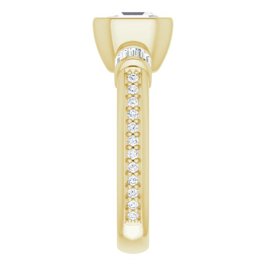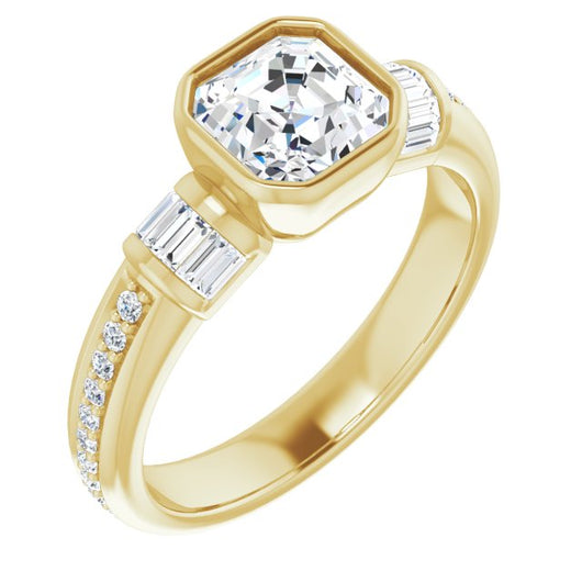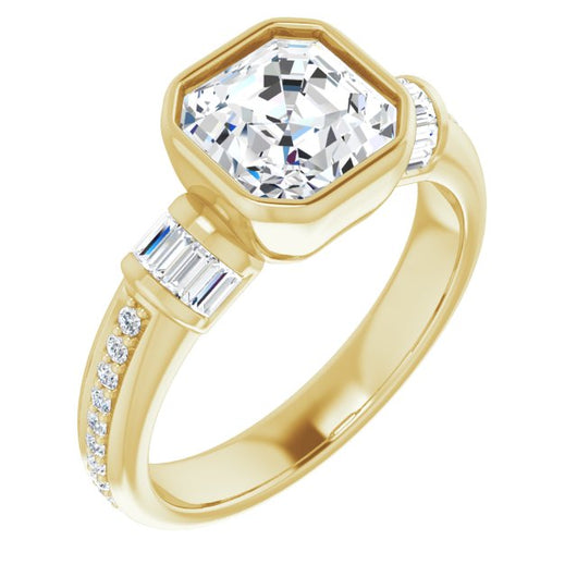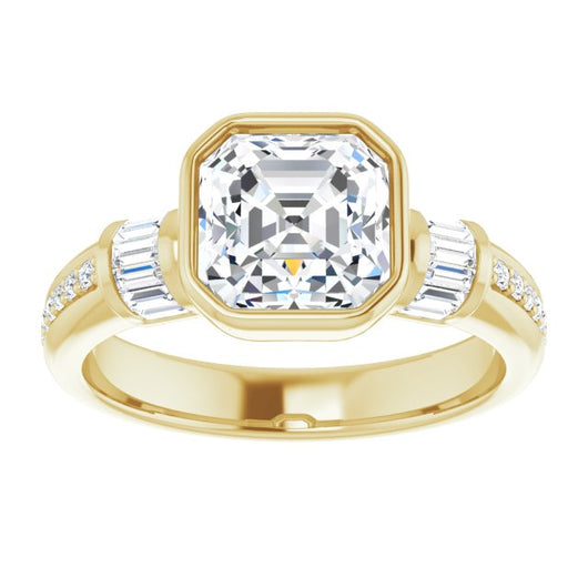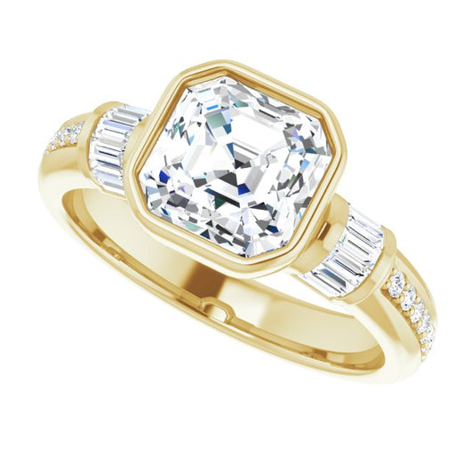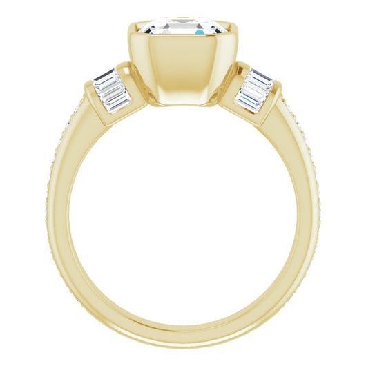 10K Yellow Gold Customizable Cathedral-Bezel Asscher Cut Style with Horizontal Baguettes & Shared Prong Band