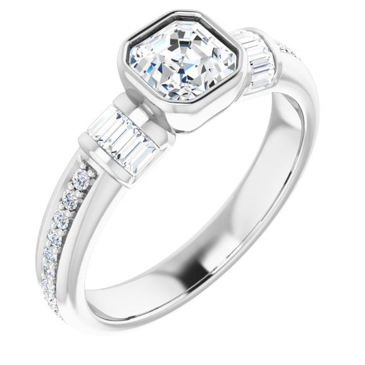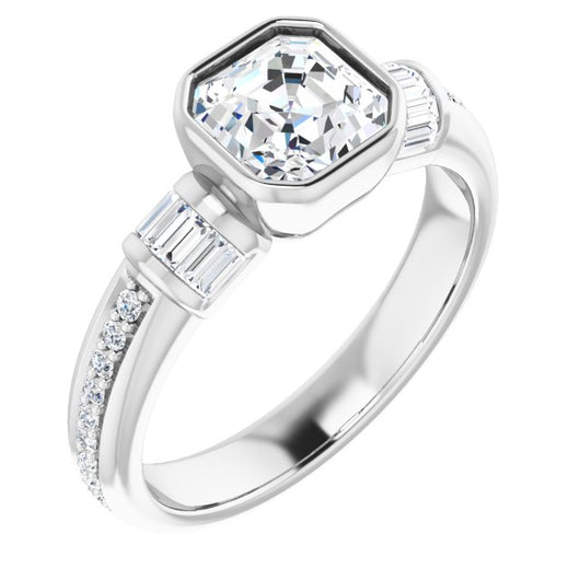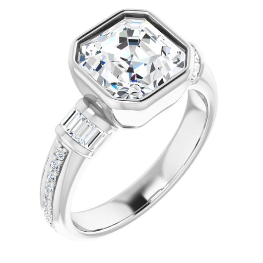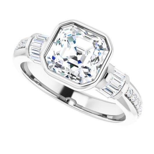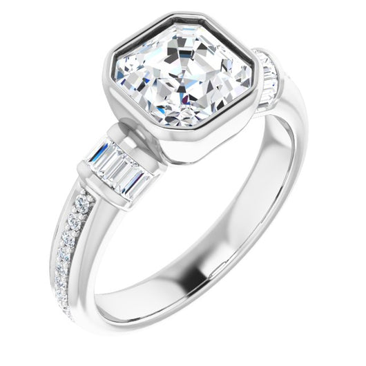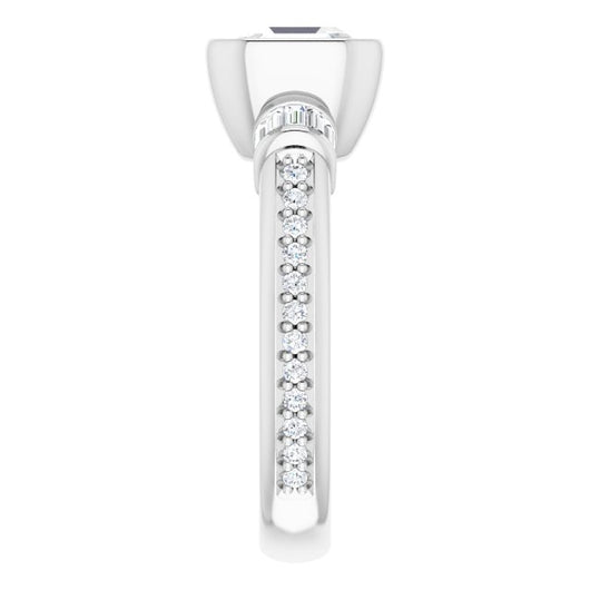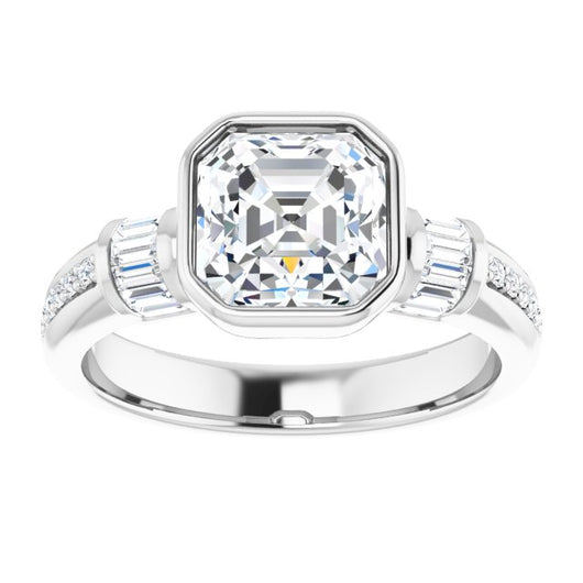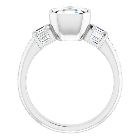 10K White Gold Customizable Cathedral-Bezel Asscher Cut Style with Horizontal Baguettes & Shared Prong Band