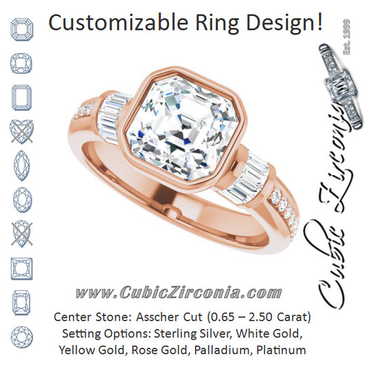 Center Stone Shape: Asscher Cut (as pictured). See this customizable ring set with other available center stone shapes here: customize setting.