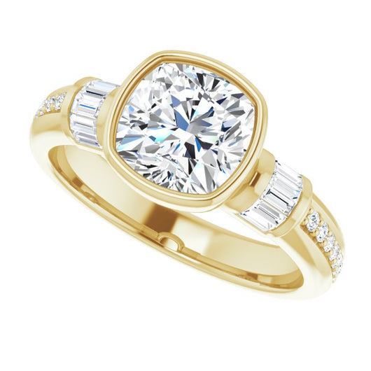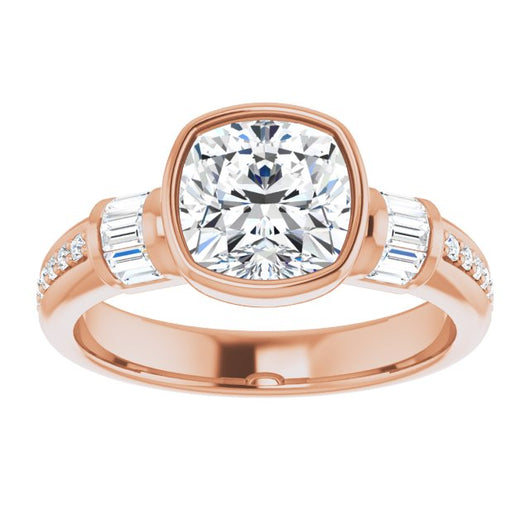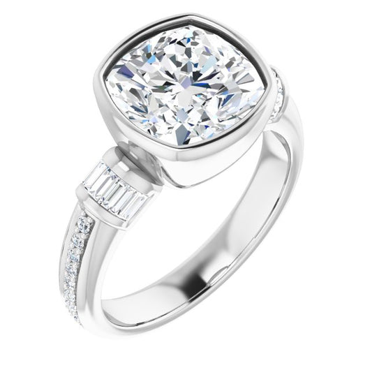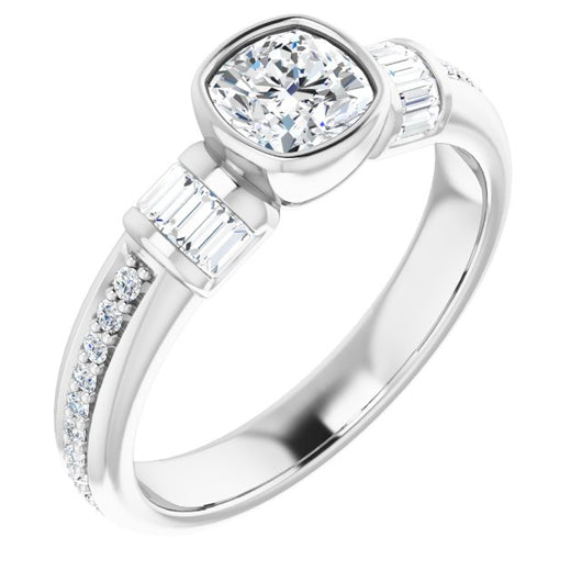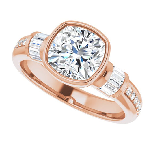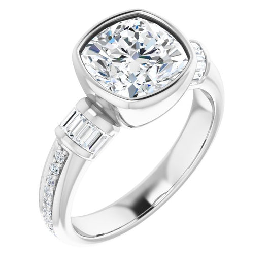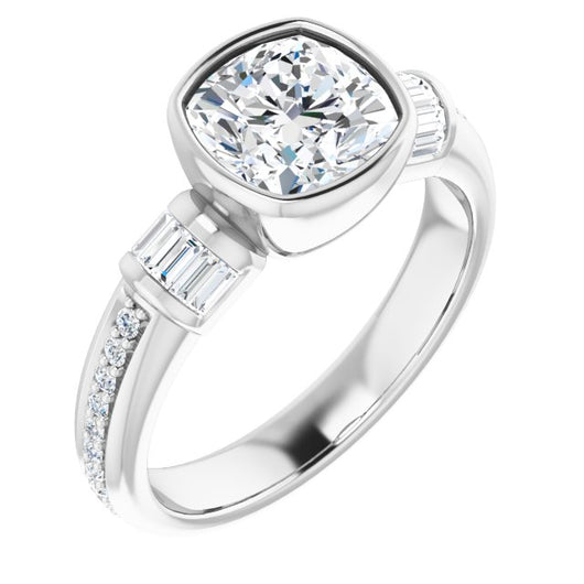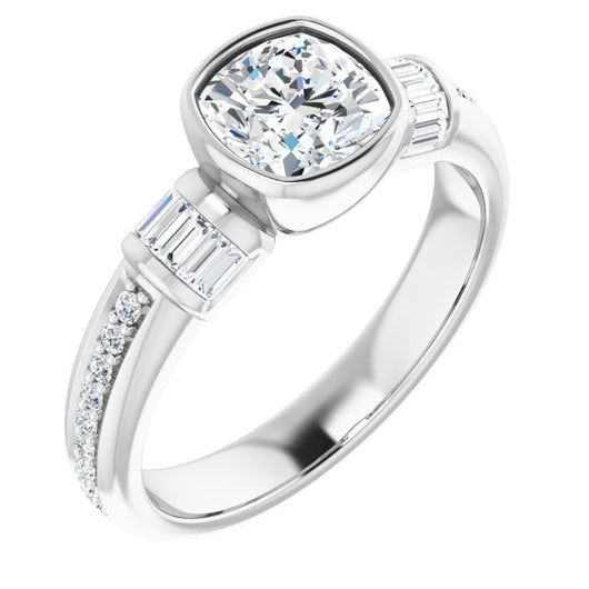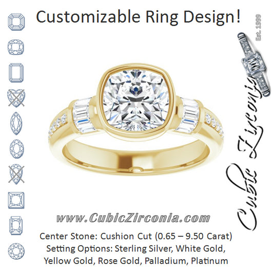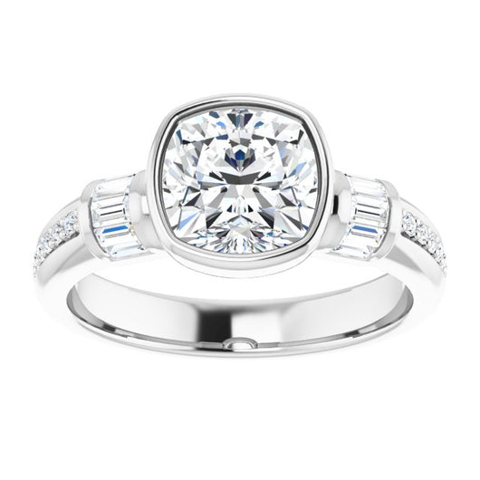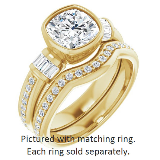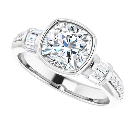 Center Stone Shape: Cushion Cut (as pictured). See this customizable ring set with other available center stone shapes here: customize setting.