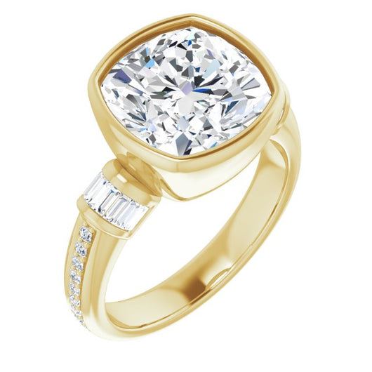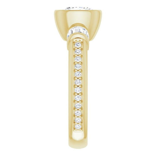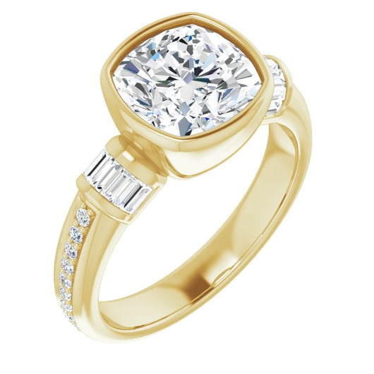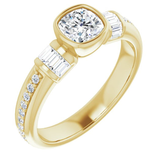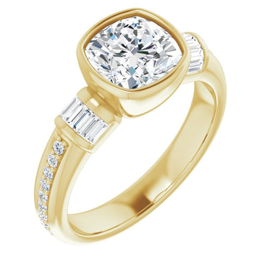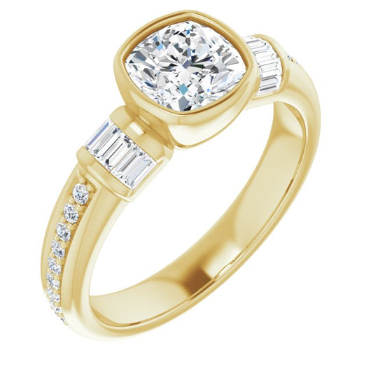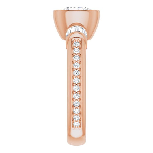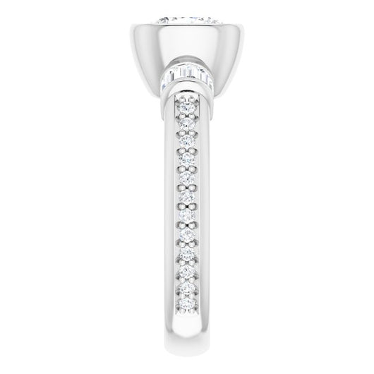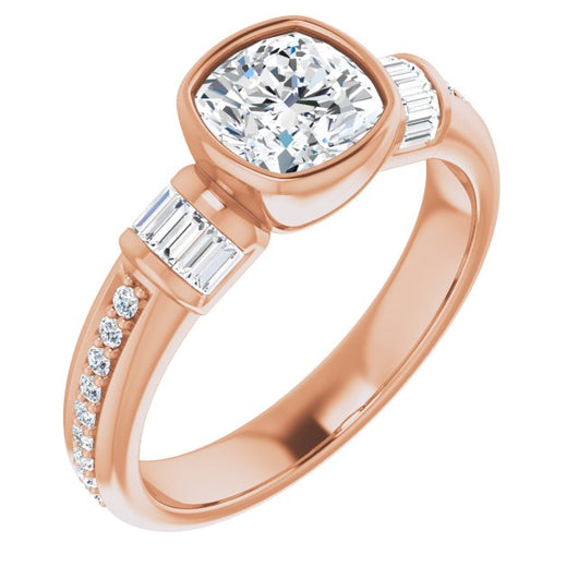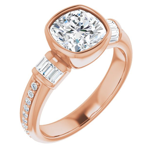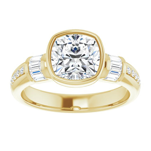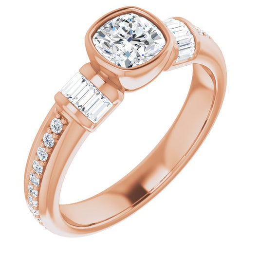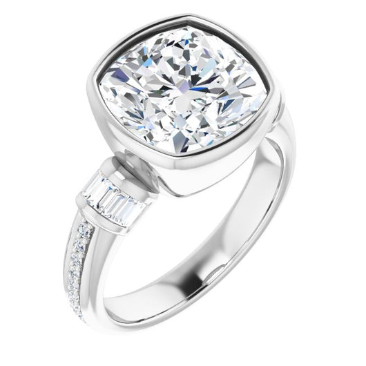 Center Stone Shape: Cushion Cut (as pictured). See this customizable ring set with other available center stone shapes here: customize setting.