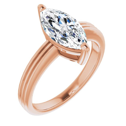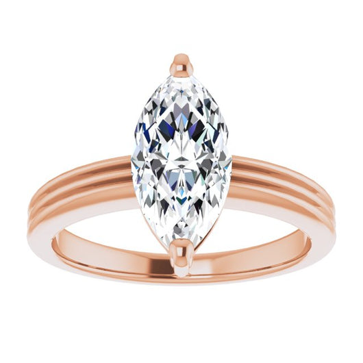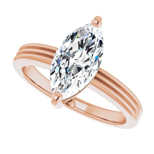 10K Rose Gold Customizable Marquise Cut Solitaire with Double-Grooved Band