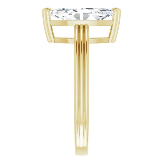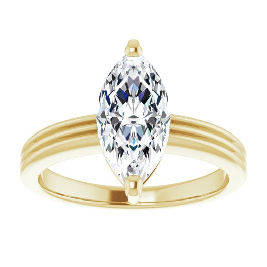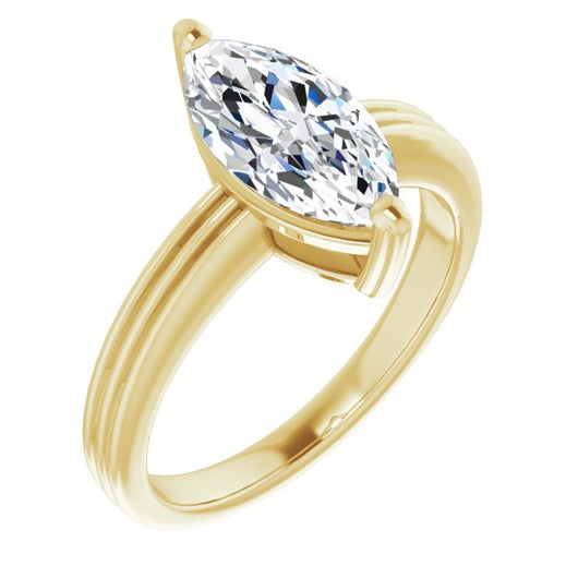 10K Yellow Gold Customizable Marquise Cut Solitaire with Double-Grooved Band