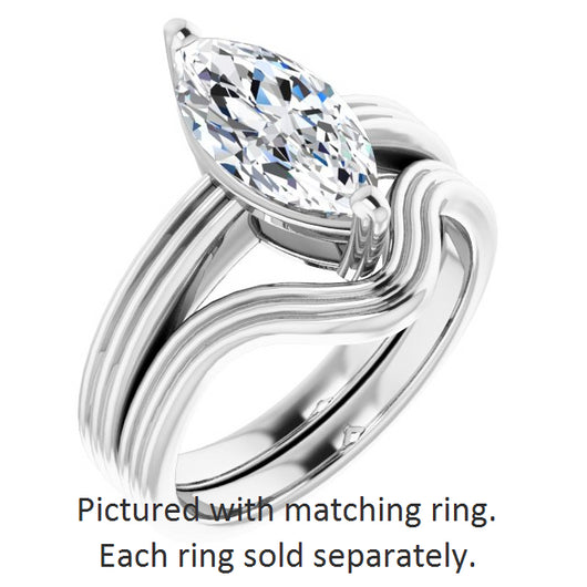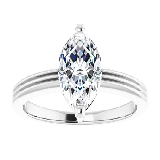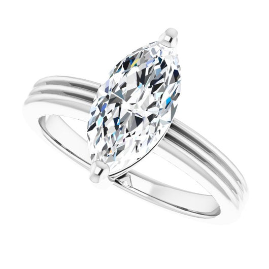 14K White Gold Customizable Marquise Cut Solitaire with Double-Grooved Band
