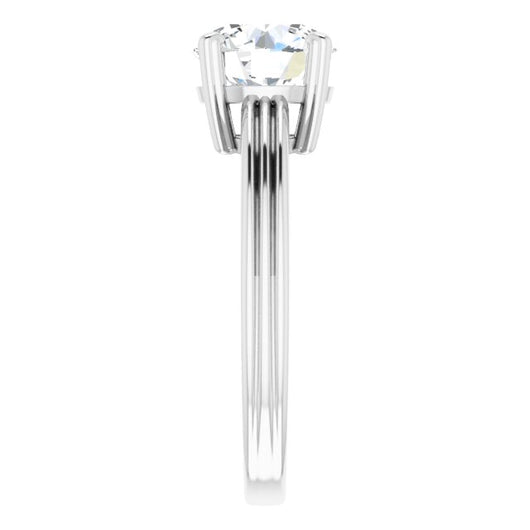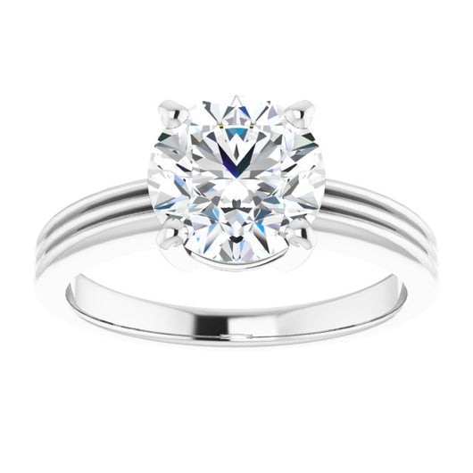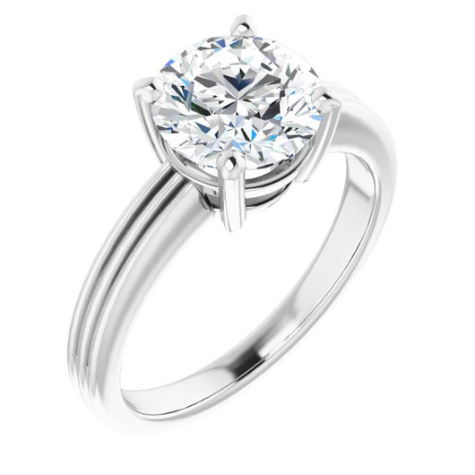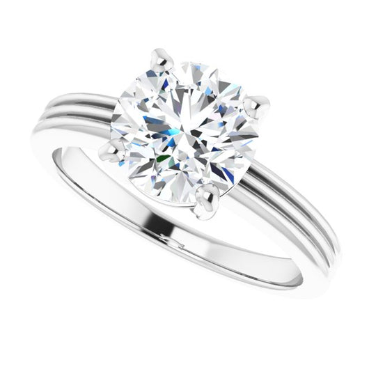 14K White Gold Customizable Round Cut Solitaire with Double-Grooved Band