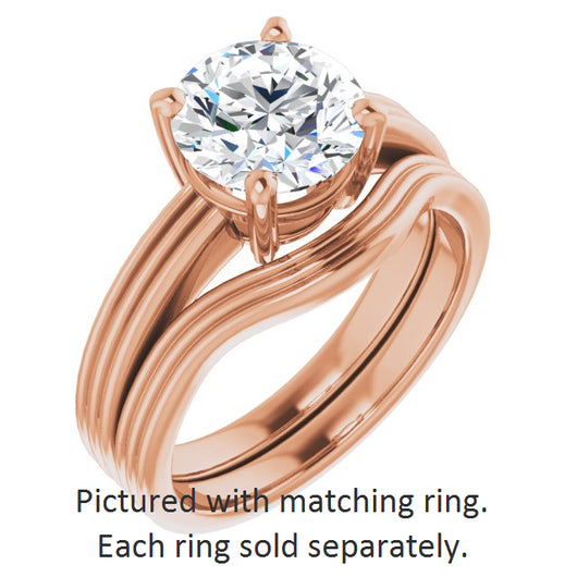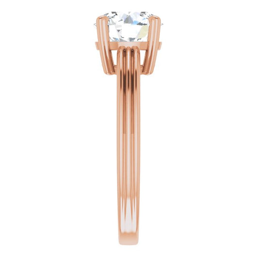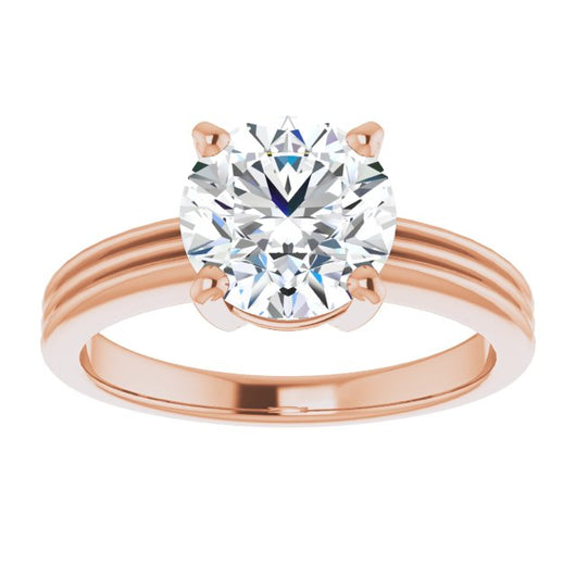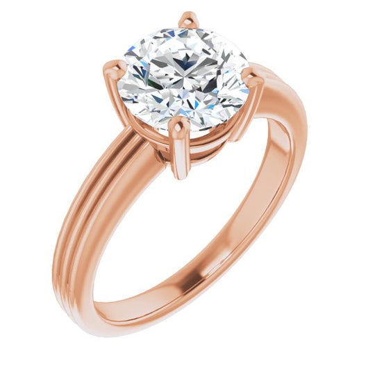 10K Rose Gold Customizable Round Cut Solitaire with Double-Grooved Band