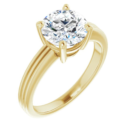 14K Yellow Gold Customizable Round Cut Solitaire with Double-Grooved Band