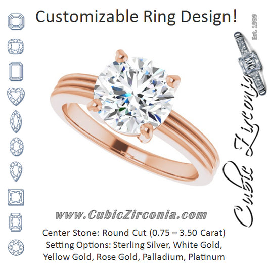 Cubic Zirconia Engagement Ring- The Davina (Customizable Round Cut Solitaire with Double-Grooved Band)