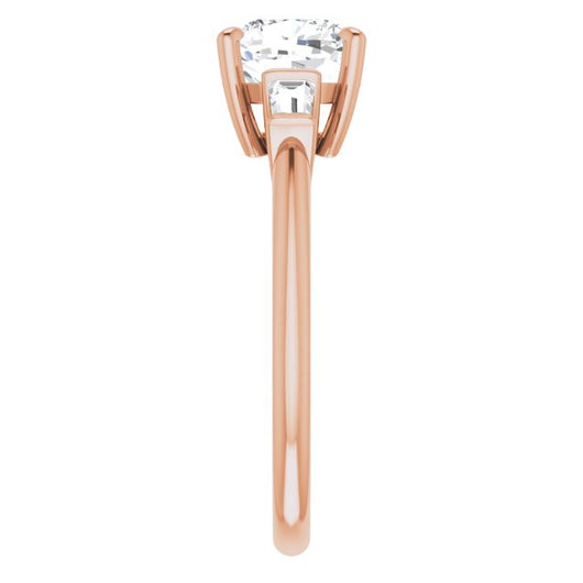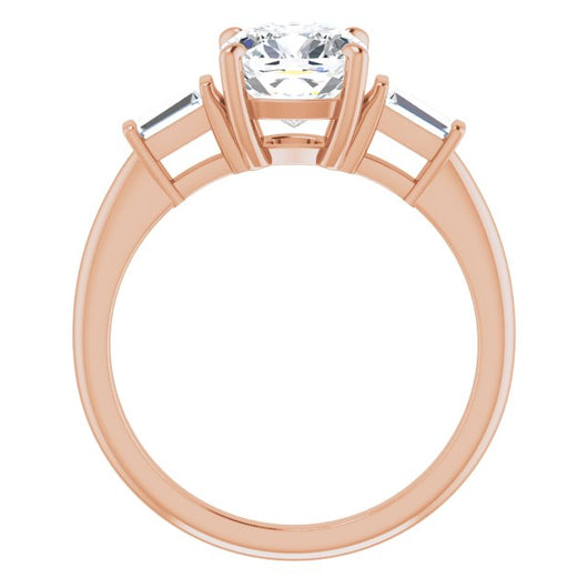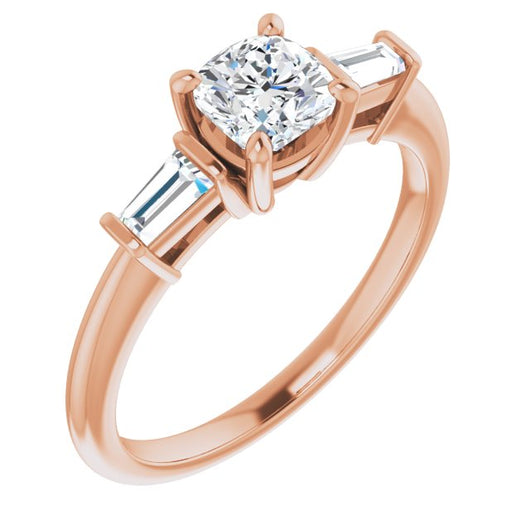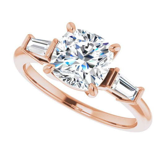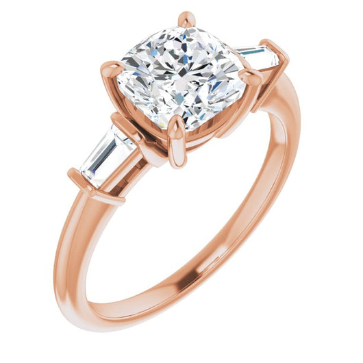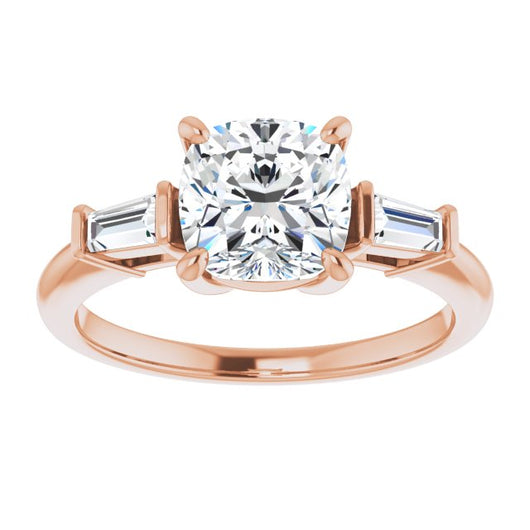 10K Rose Gold Customizable 3-stone Cushion Cut Design with Dual Baguette Accents)