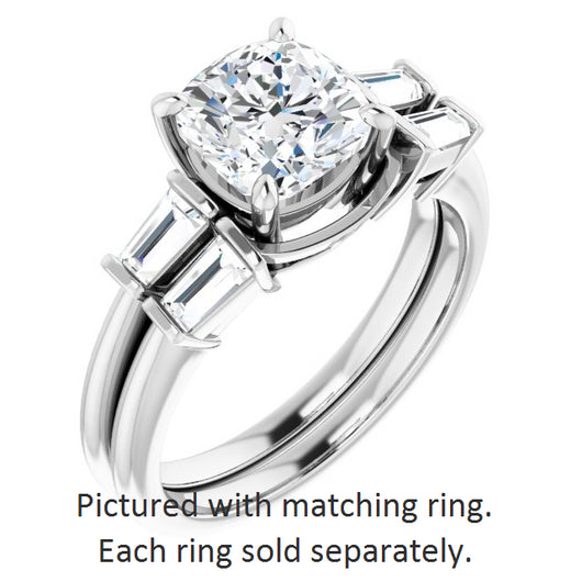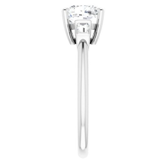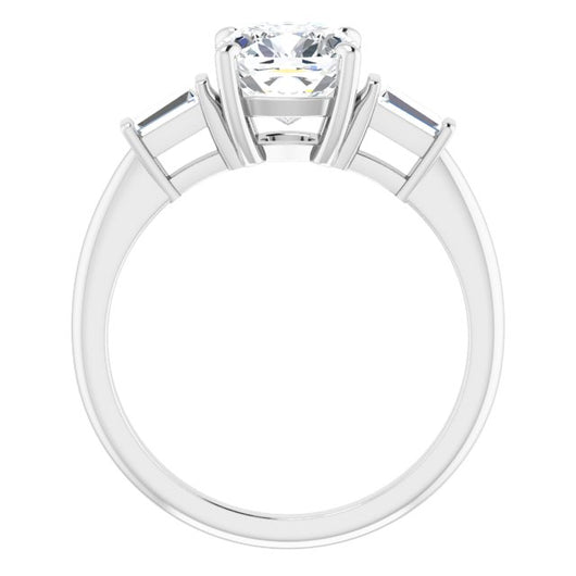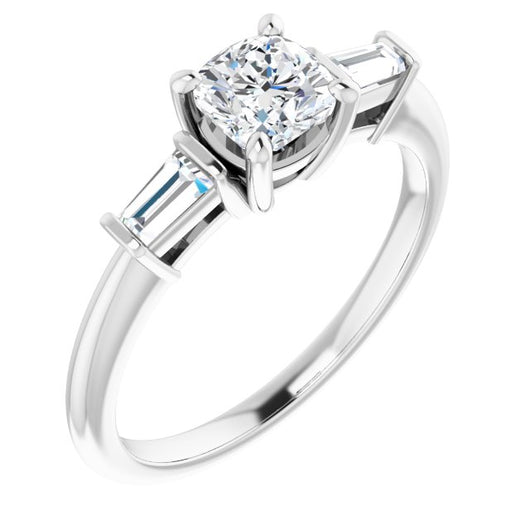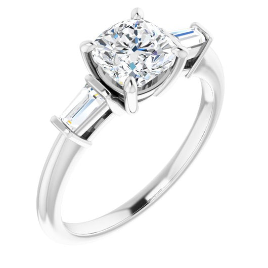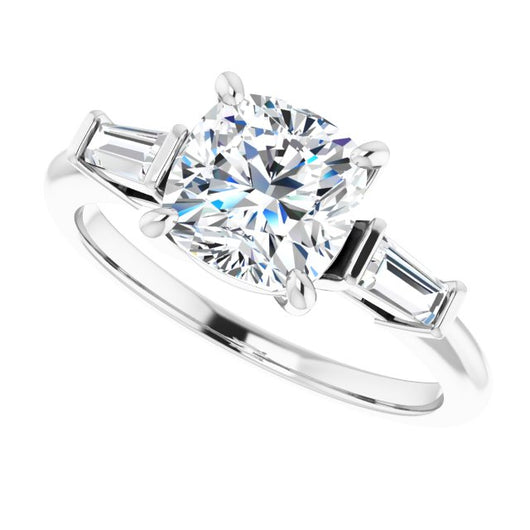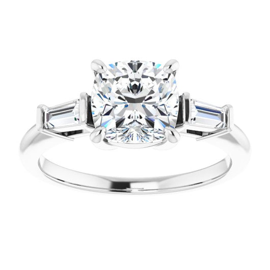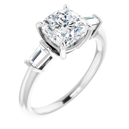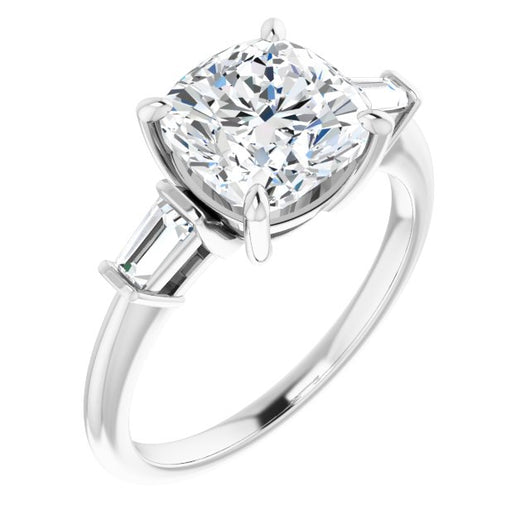 10K White Gold Customizable 3-stone Cushion Cut Design with Dual Baguette Accents)