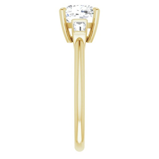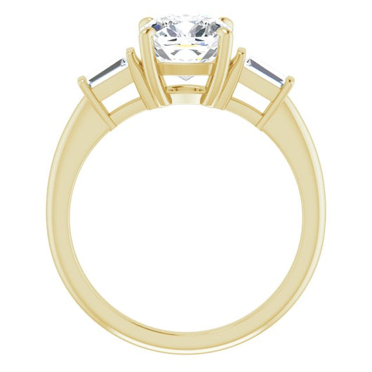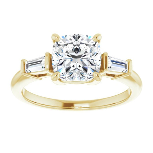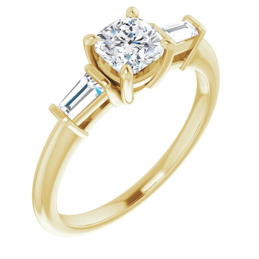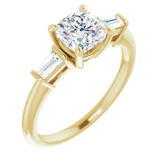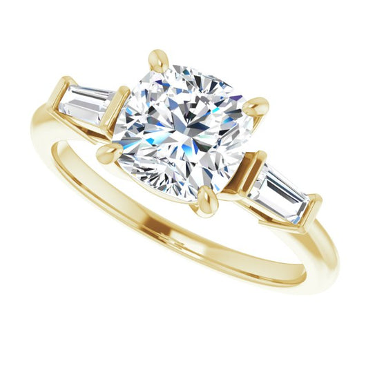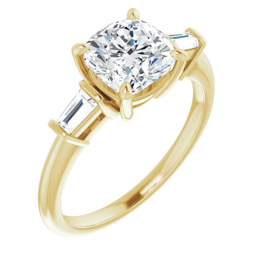 10K Yellow Gold Customizable 3-stone Cushion Cut Design with Dual Baguette Accents)