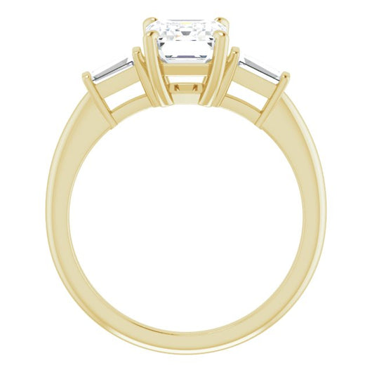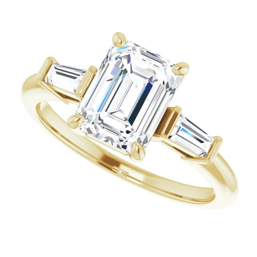 10K Yellow Gold Customizable 3-stone Emerald/Radiant Cut Design with Dual Baguette Accents)