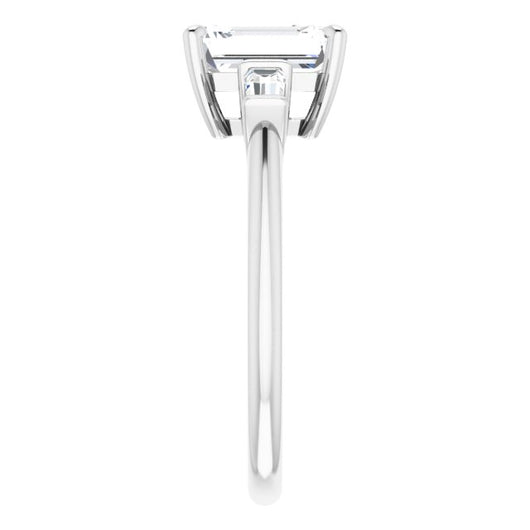 10K White Gold Customizable 3-stone Emerald/Radiant Cut Design with Dual Baguette Accents)