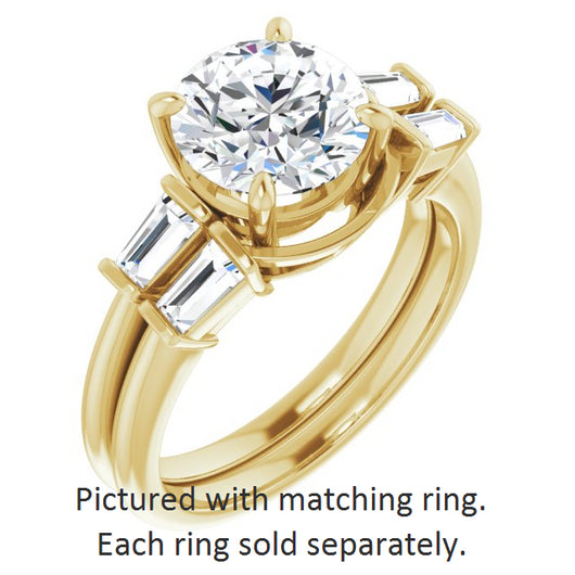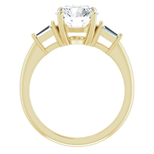 10K Yellow Gold Customizable 3-stone Round Cut Design with Dual Baguette Accents)