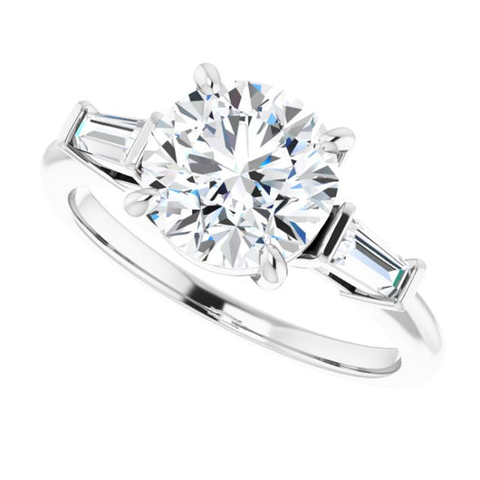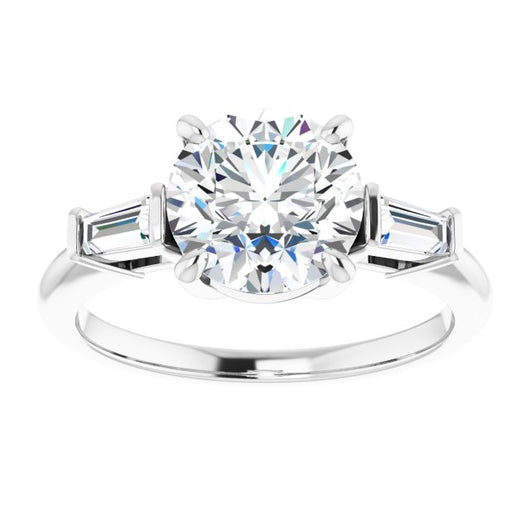 10K White Gold Customizable 3-stone Round Cut Design with Dual Baguette Accents)
