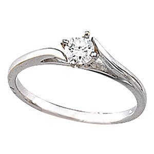 See how she sparkles and shines...The Dell engagement ring is one of our simpler bridal jewelry pieces, but that is only because she doesn't boast that she's the most! Her cathedral-prong-set solitaire center setting comes with 0.23 to 2.5 carats carats of our top-quality 5A Cubic Zirconia that offers an understated elegance that will never outshine the lady who wears it.