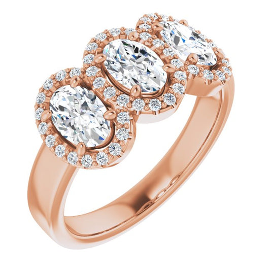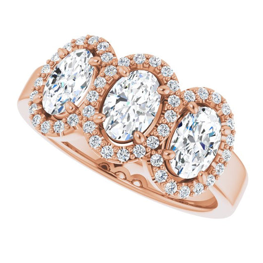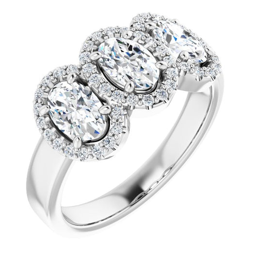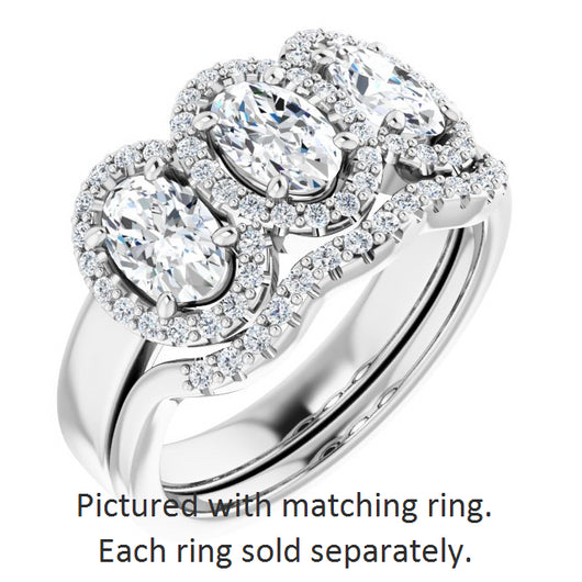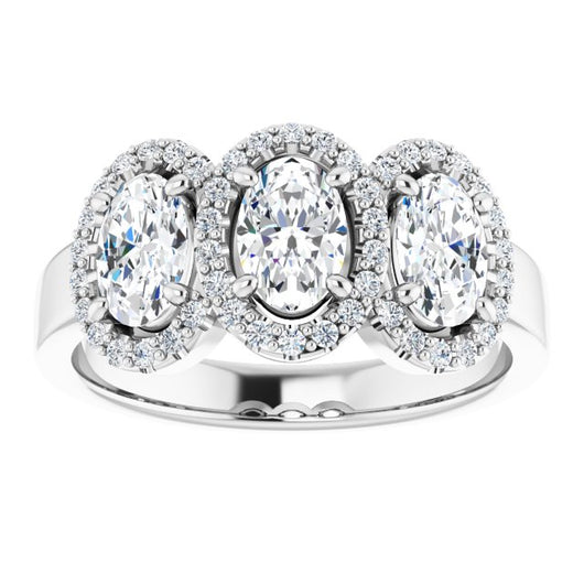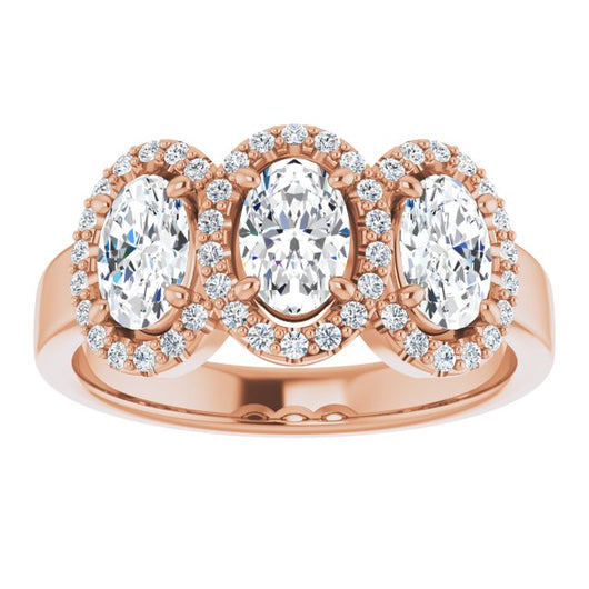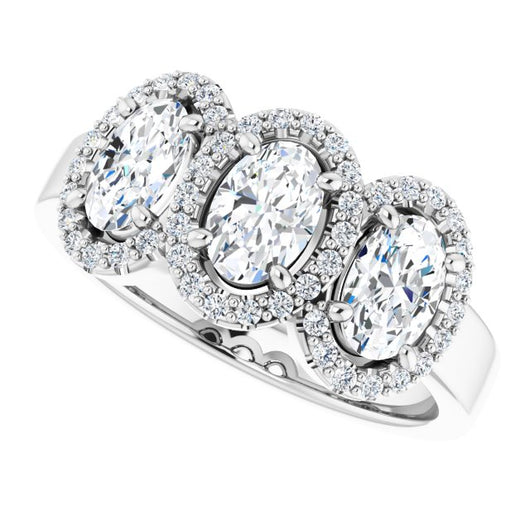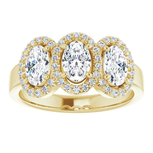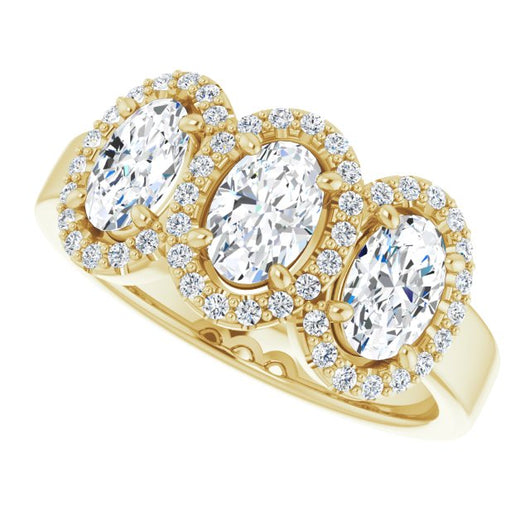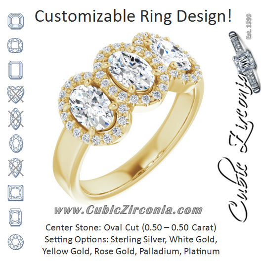 Cubic Zirconia Engagement Ring- The Delores (Customizable Oval Cut Triple Halo 3-stone Design)