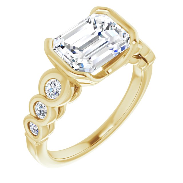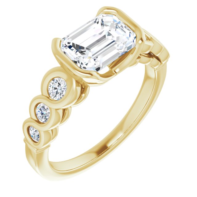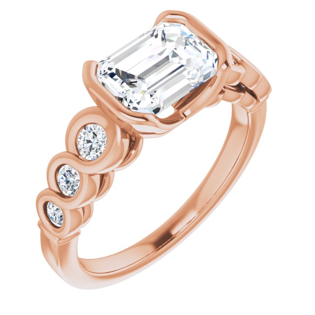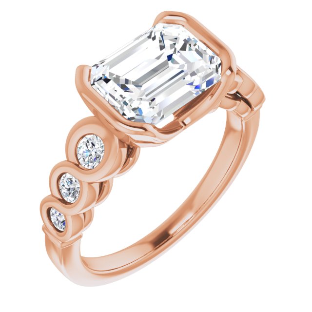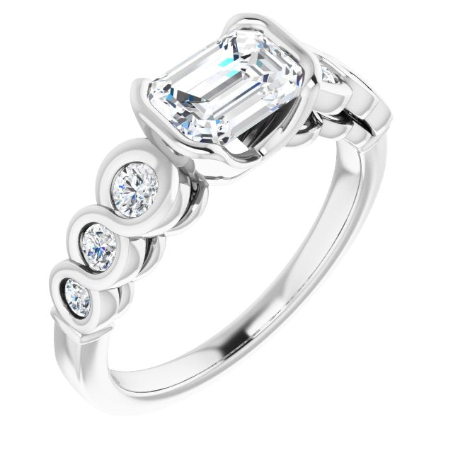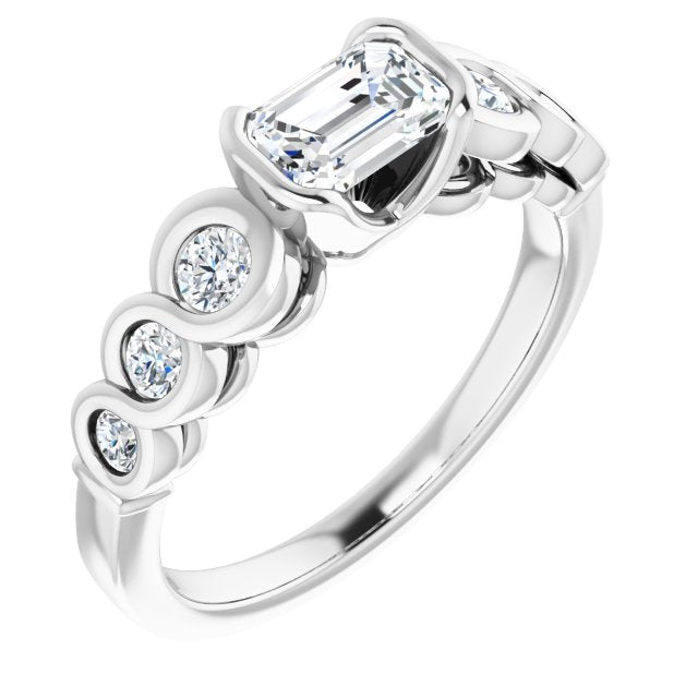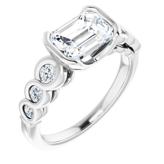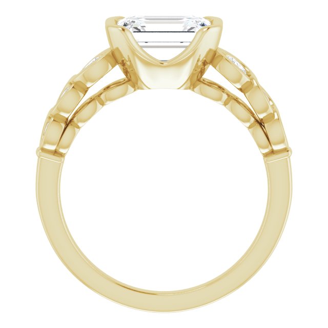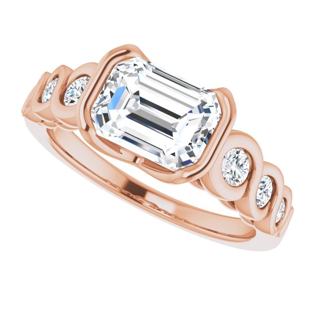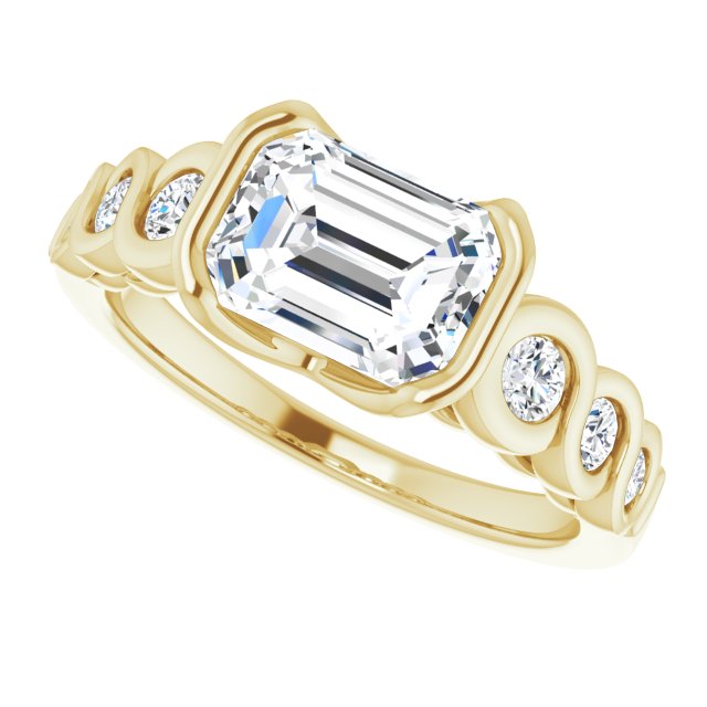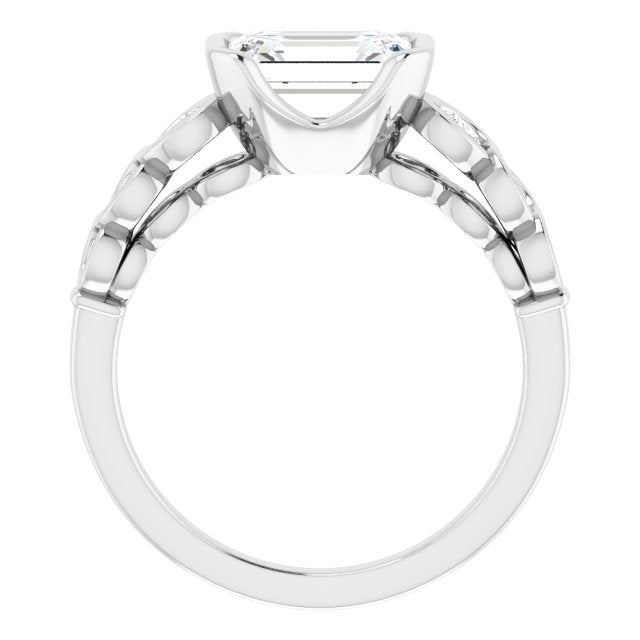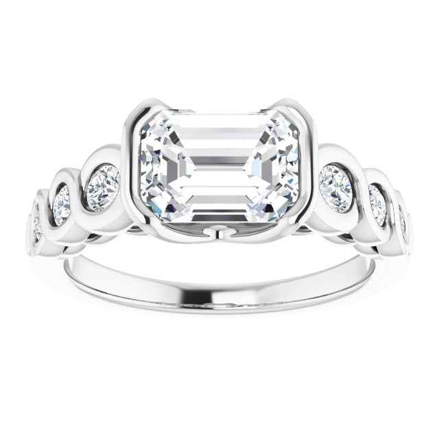 Center Stone Shape: Radiant Cut (as pictured with Emerald Cut). See this customizable ring set with other available center stone shapes here: customize setting.