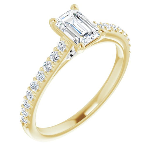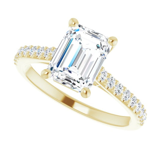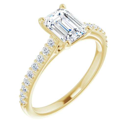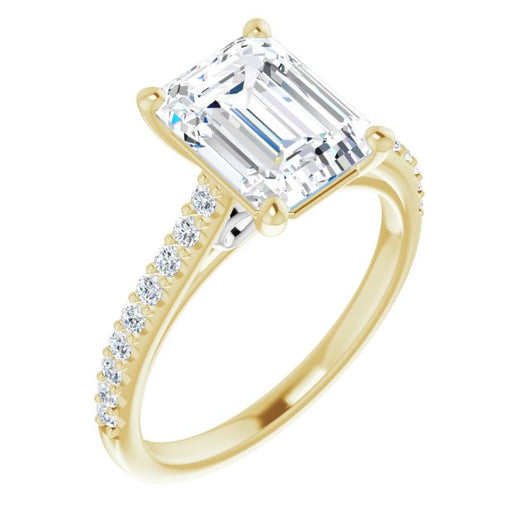 10K Yellow Gold Customizable Cathedral-raised Emerald/Radiant Cut Design with Accented Band and Infinity Symbol Trellis Decoration