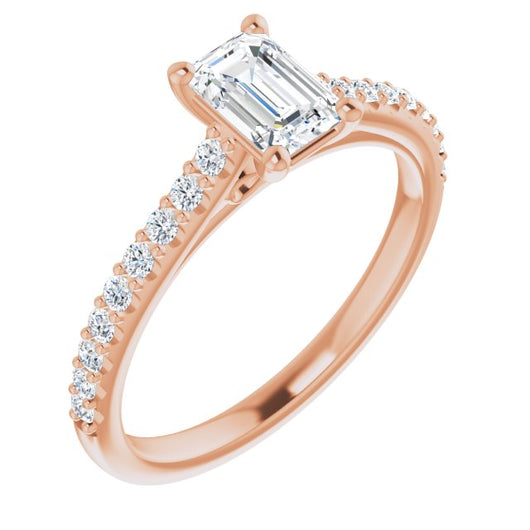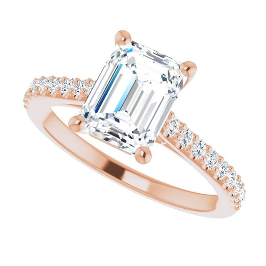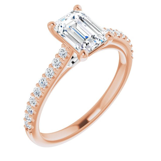 10K Rose Gold Customizable Cathedral-raised Emerald/Radiant Cut Design with Accented Band and Infinity Symbol Trellis Decoration