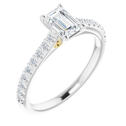 14K Yellow & White Gold Customizable Cathedral-raised Emerald/Radiant Cut Design with Accented Band and Infinity Symbol Trellis Decoration