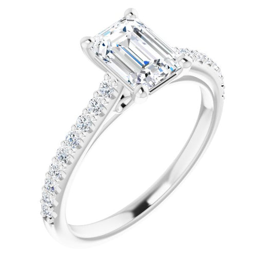 10K White Gold Customizable Cathedral-raised Emerald/Radiant Cut Design with Accented Band and Infinity Symbol Trellis Decoration