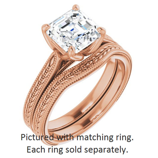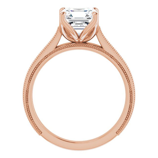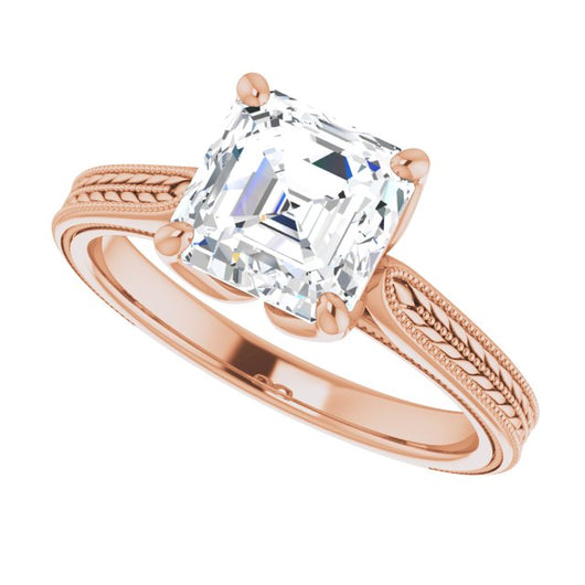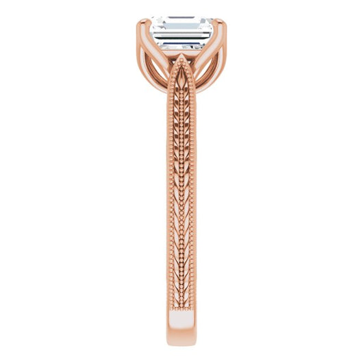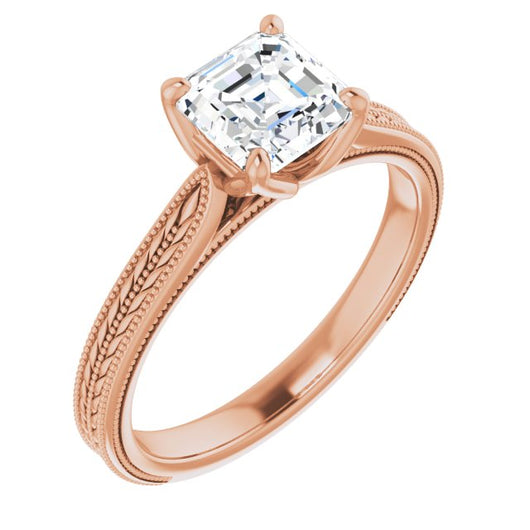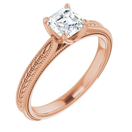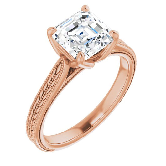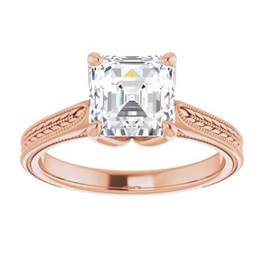 10K Rose Gold Customizable Asscher Cut Solitaire with Wheat-inspired Band