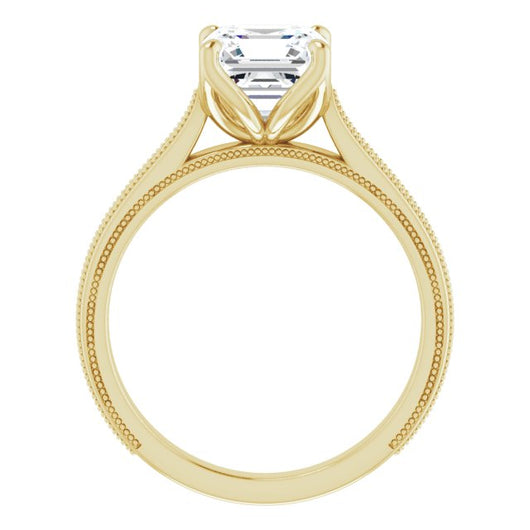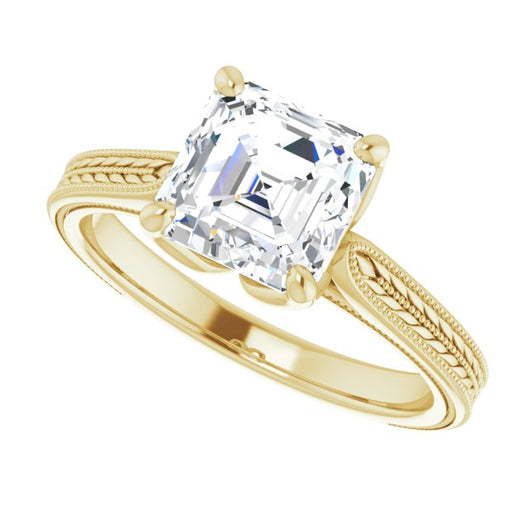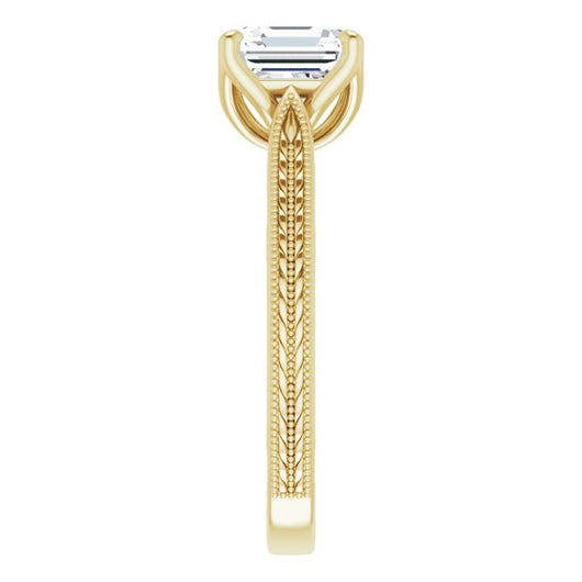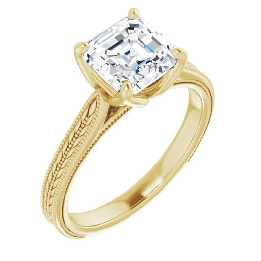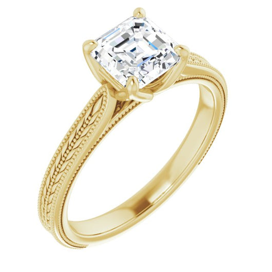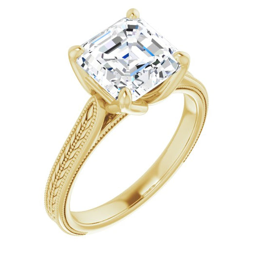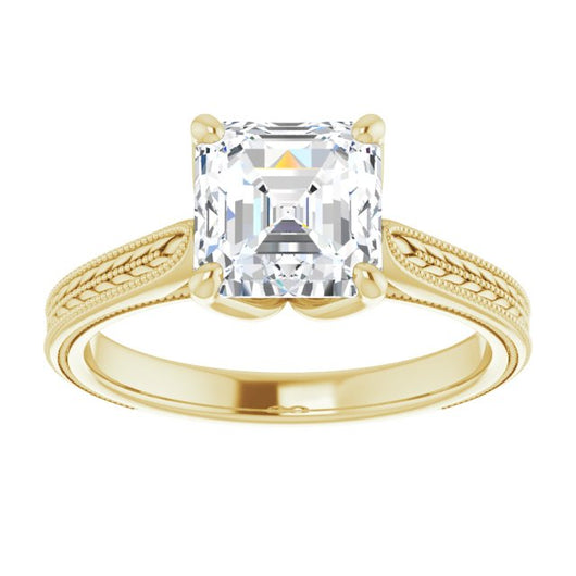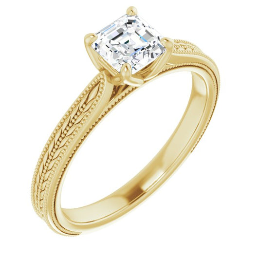 10K Yellow Gold Customizable Asscher Cut Solitaire with Wheat-inspired Band