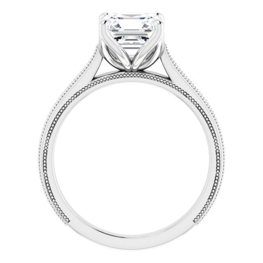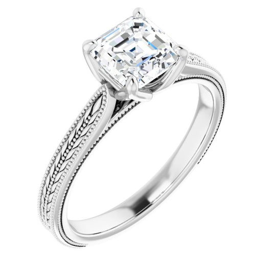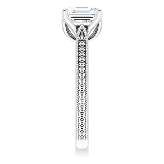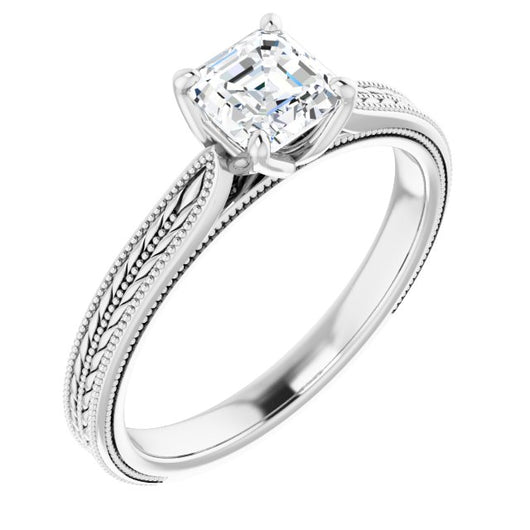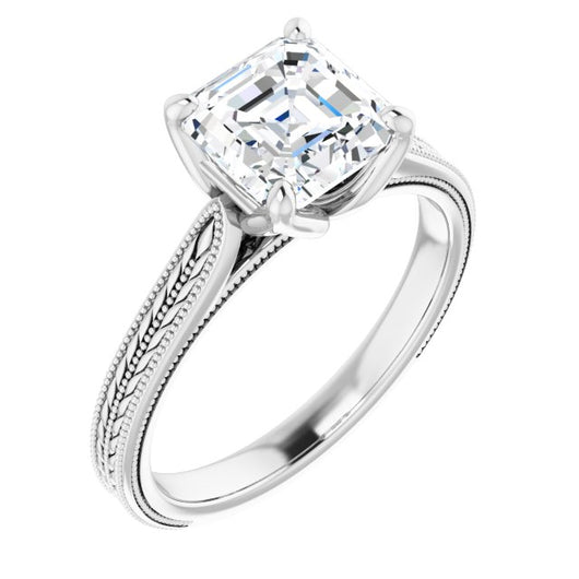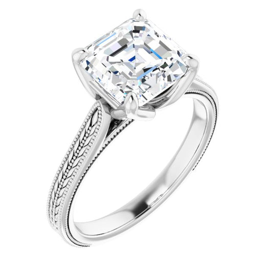 10K White Gold Customizable Asscher Cut Solitaire with Wheat-inspired Band