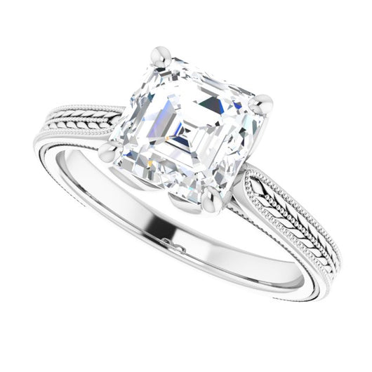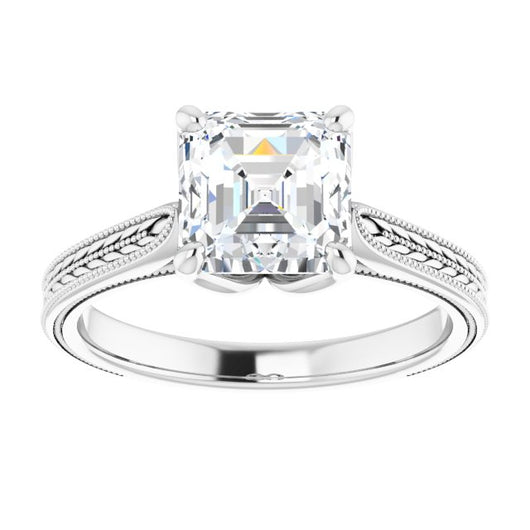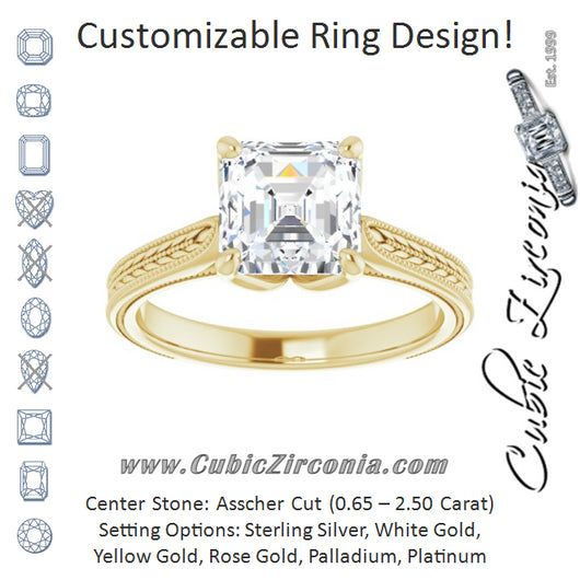 Cubic Zirconia Engagement Ring- The Dulcia (Customizable Asscher Cut Solitaire with Wheat-inspired Band)
