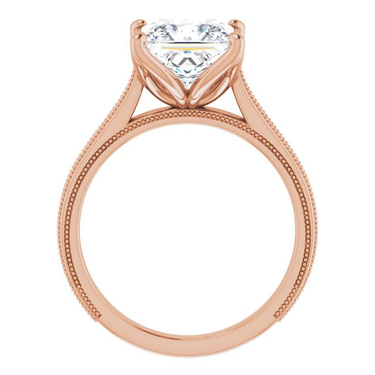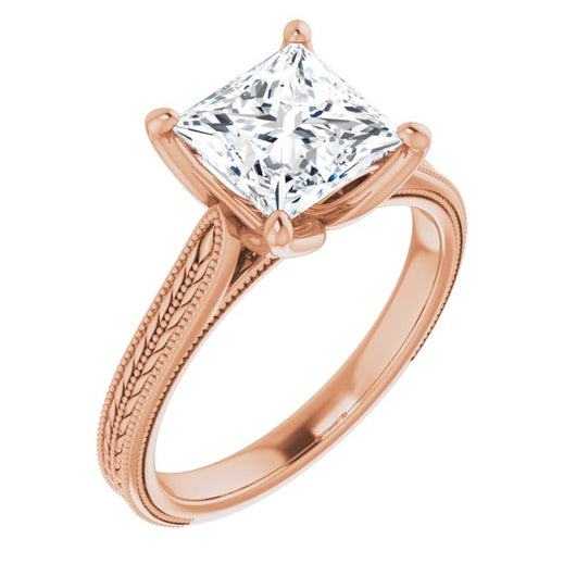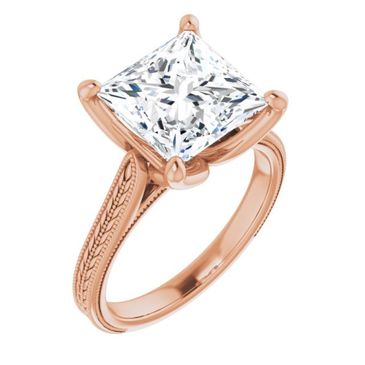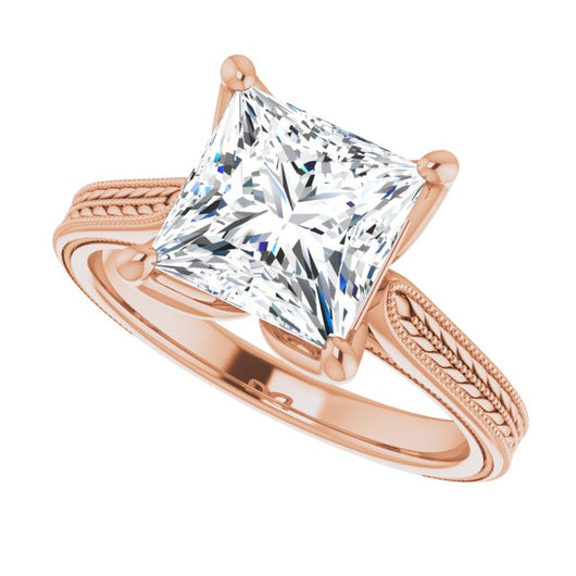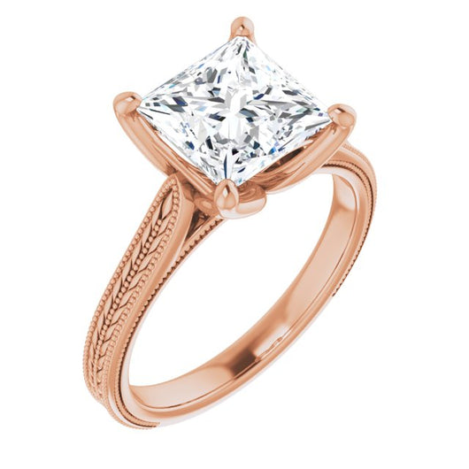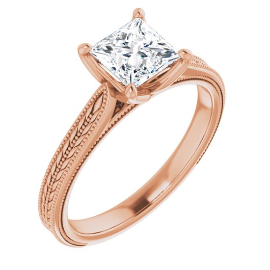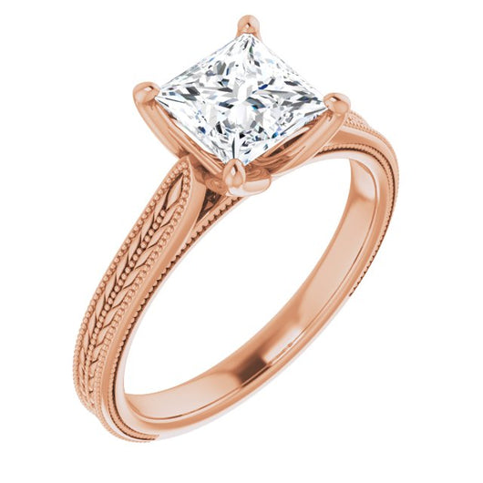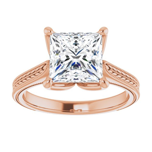 10K Rose Gold Customizable Princess/Square Cut Solitaire with Wheat-inspired Band