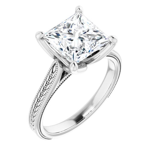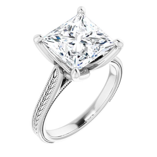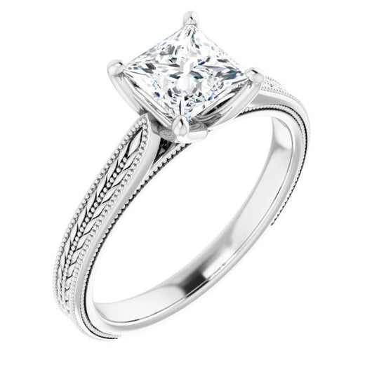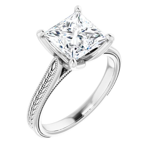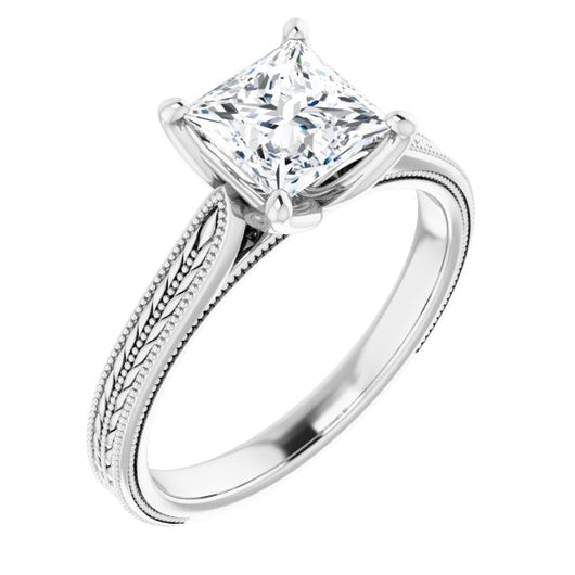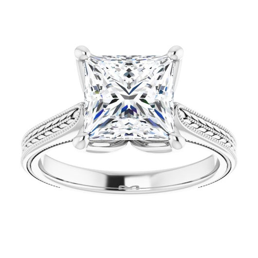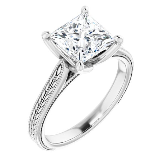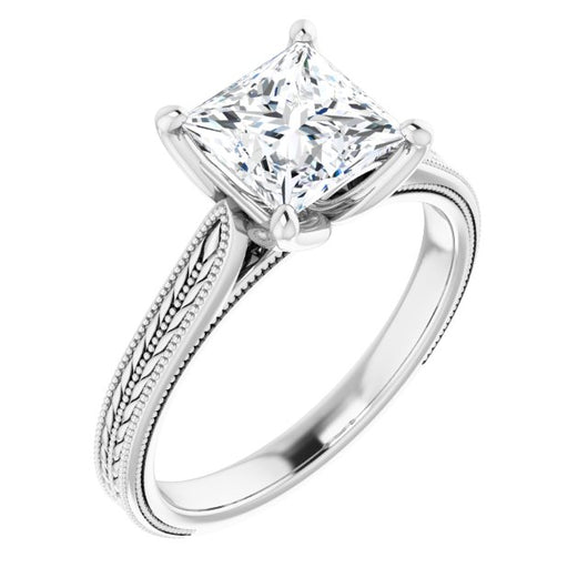 10K White Gold Customizable Princess/Square Cut Solitaire with Wheat-inspired Band