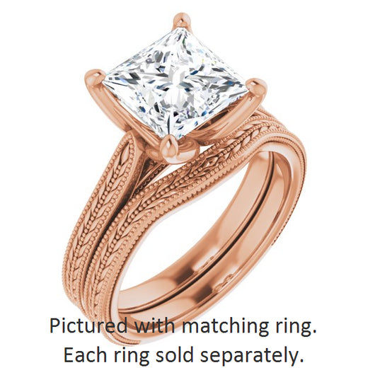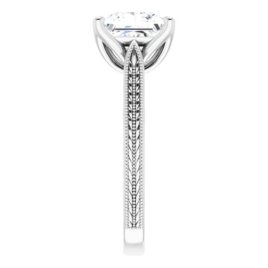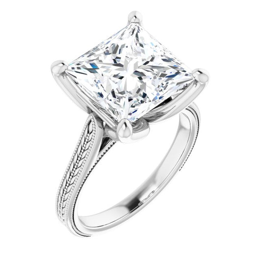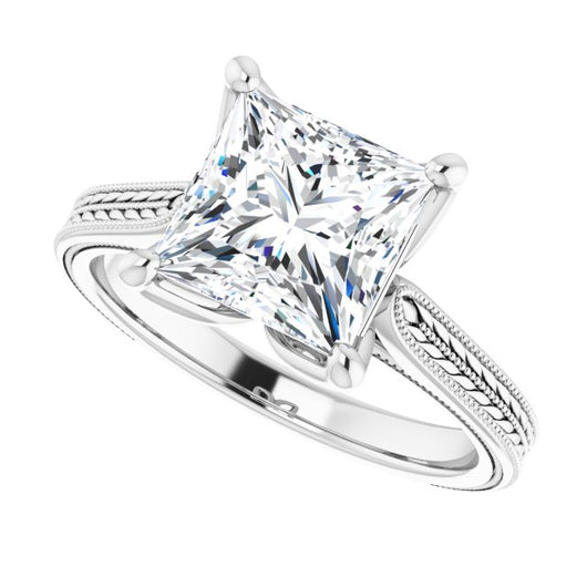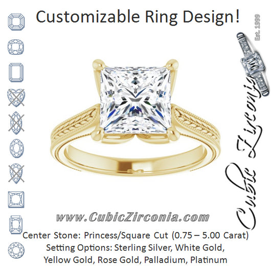 Cubic Zirconia Engagement Ring- The Dulcia (Customizable Princess/Square Cut Solitaire with Wheat-inspired Band)