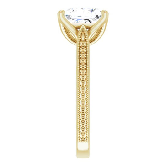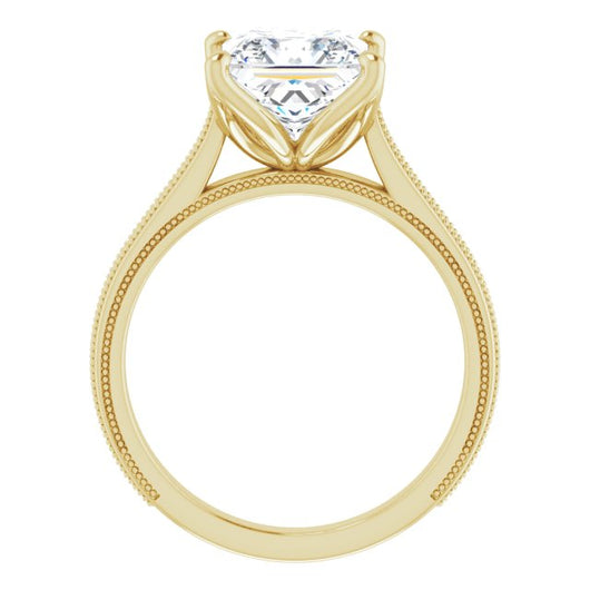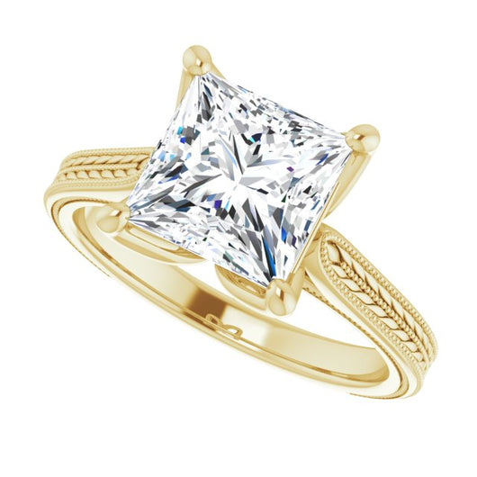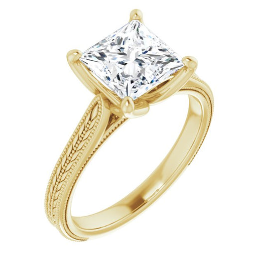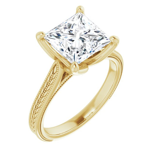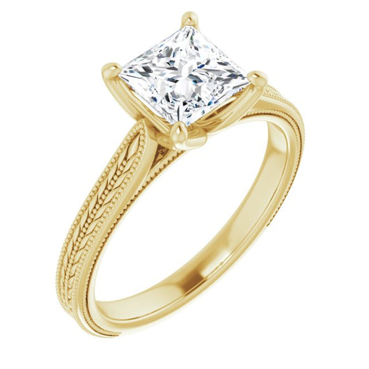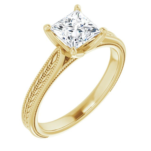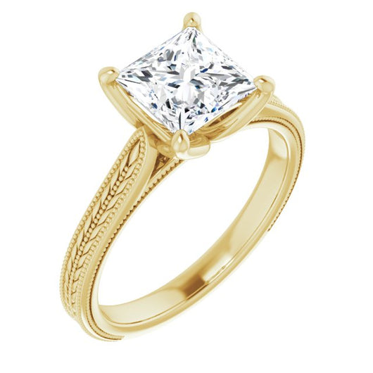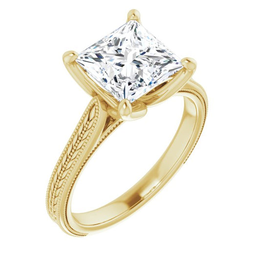 10K Yellow Gold Customizable Princess/Square Cut Solitaire with Wheat-inspired Band