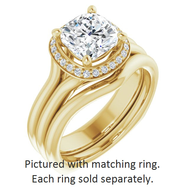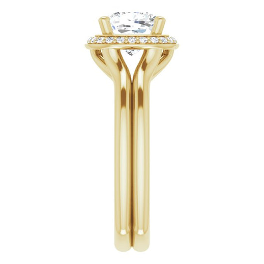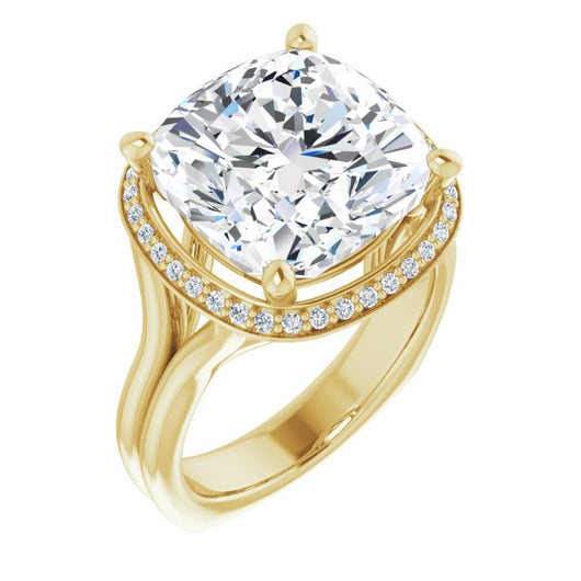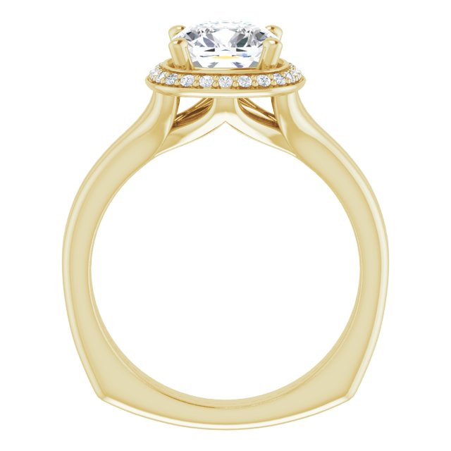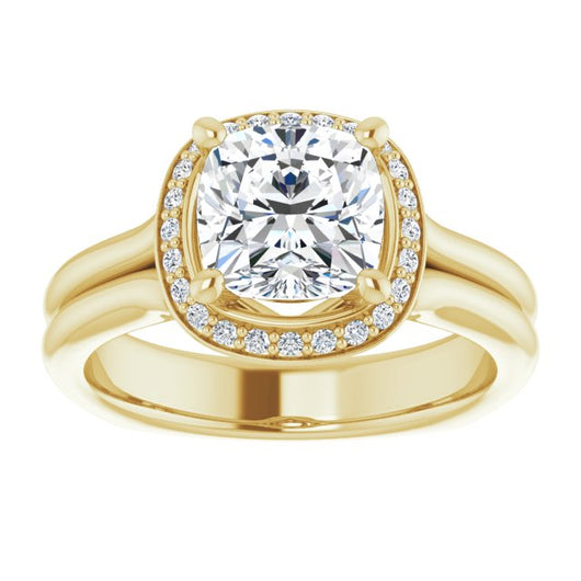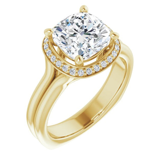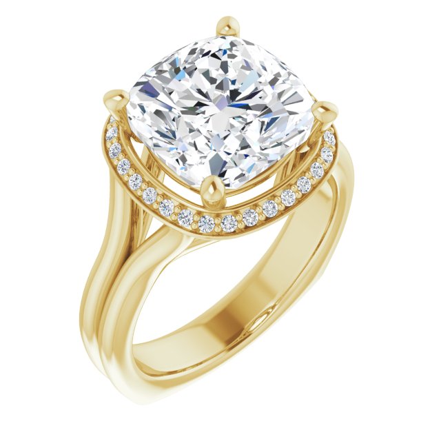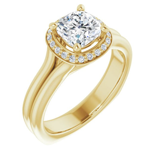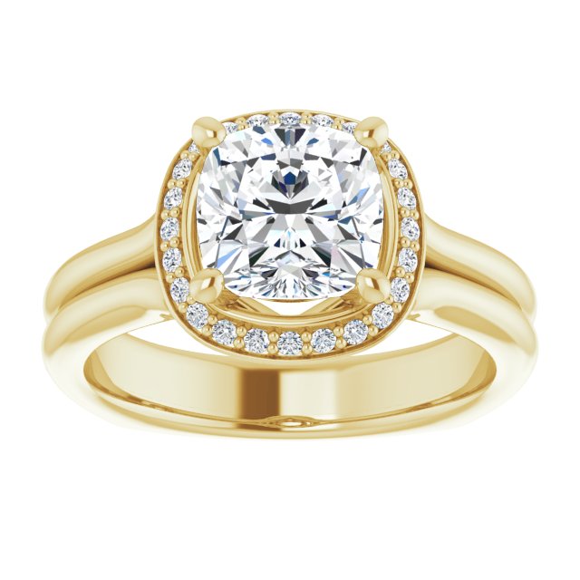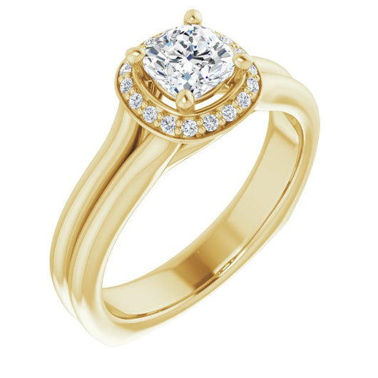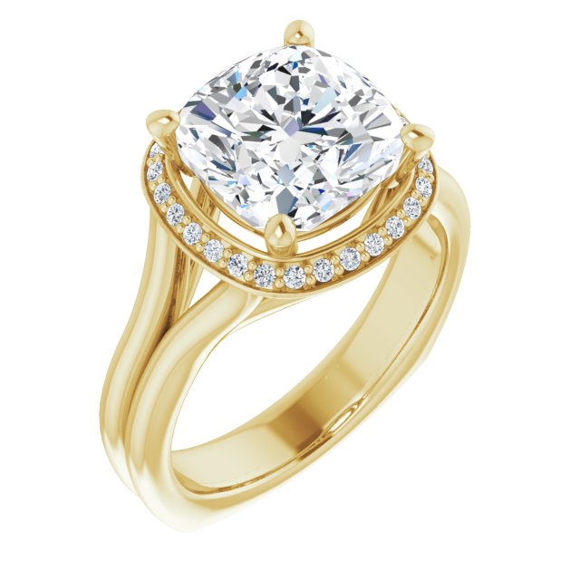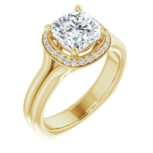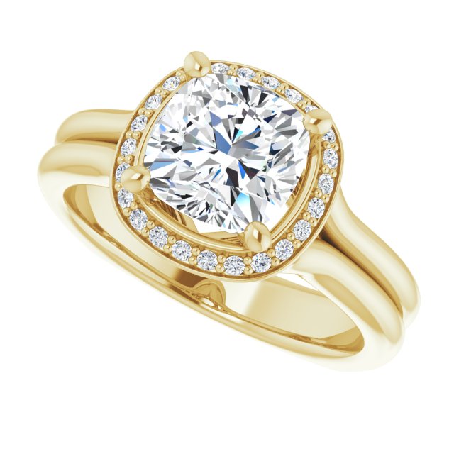 10K Yellow Gold Customizable Cushion Cut Style with Halo, Wide Split Band and Euro Shank