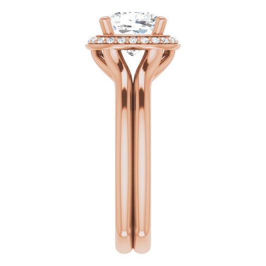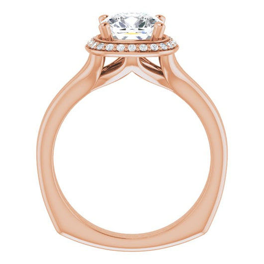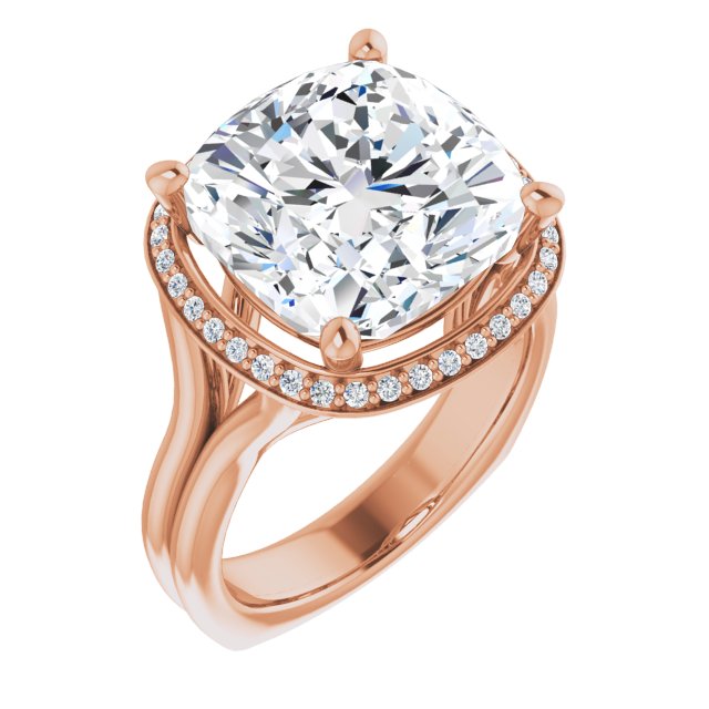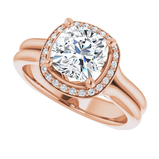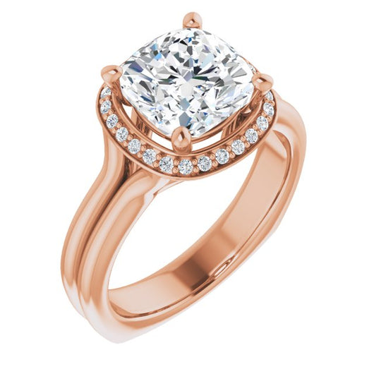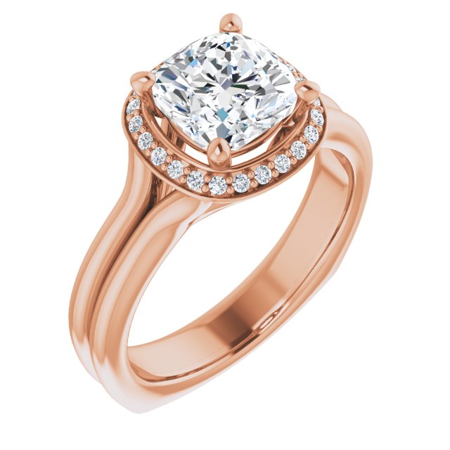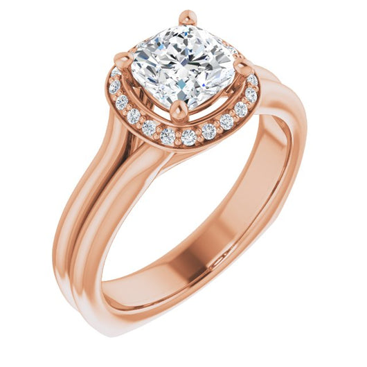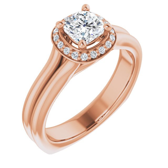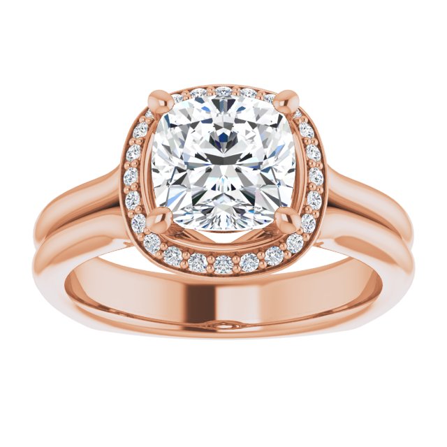 10K Rose Gold Customizable Cushion Cut Style with Halo, Wide Split Band and Euro Shank