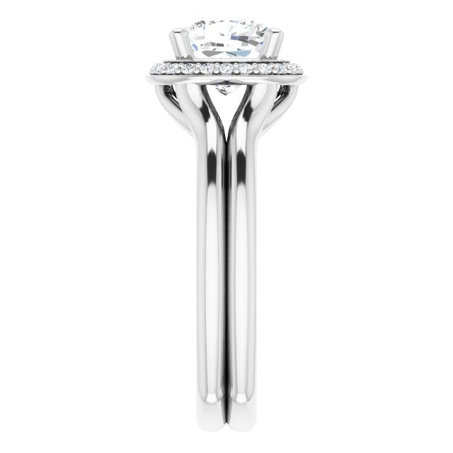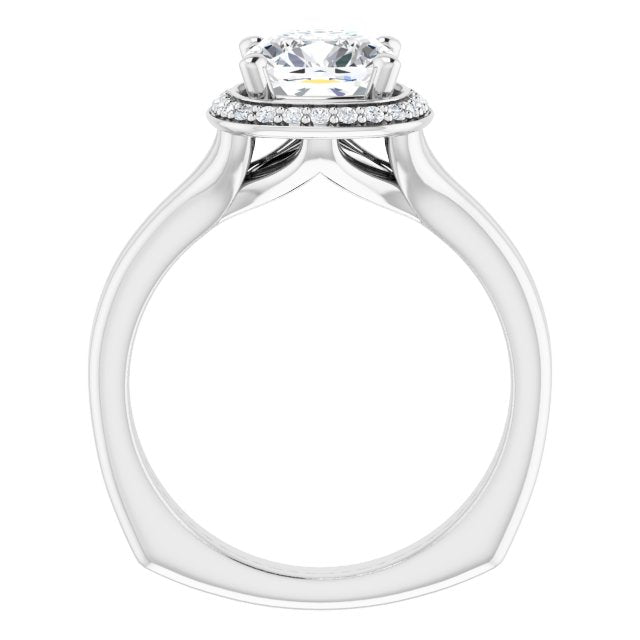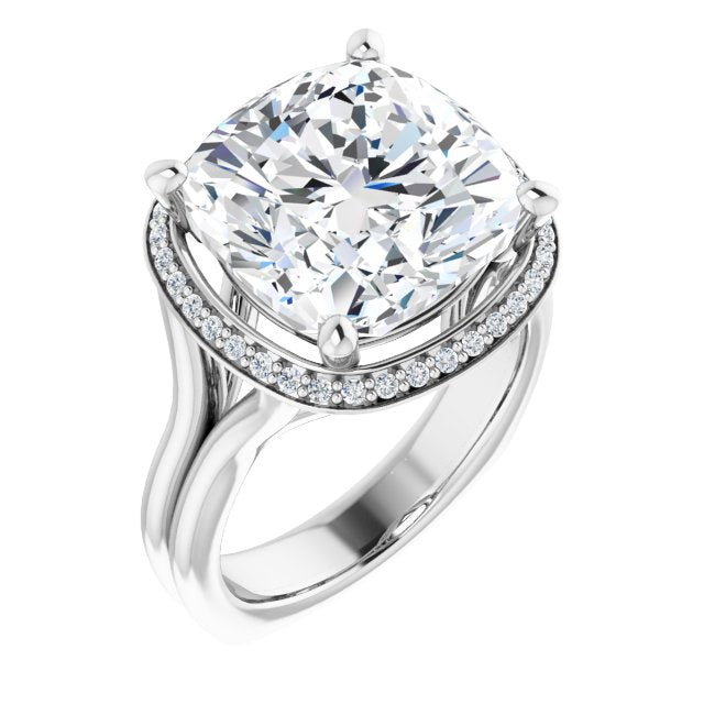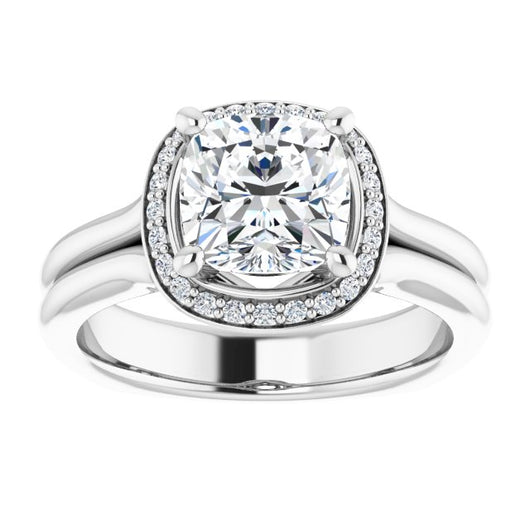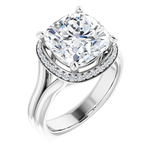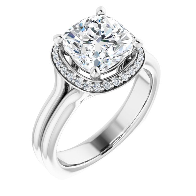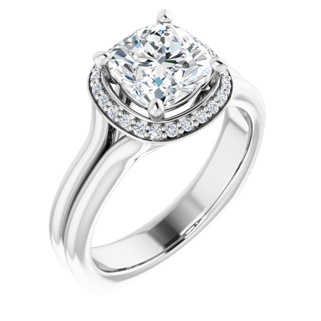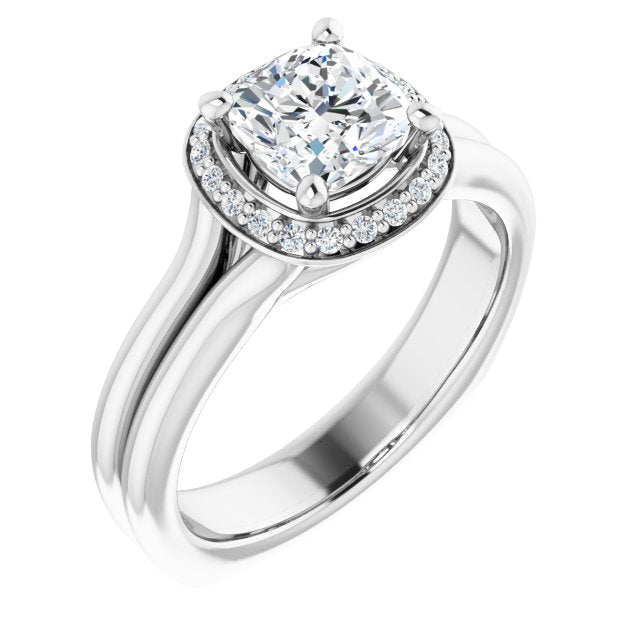 10K White Gold Customizable Cushion Cut Style with Halo, Wide Split Band and Euro Shank