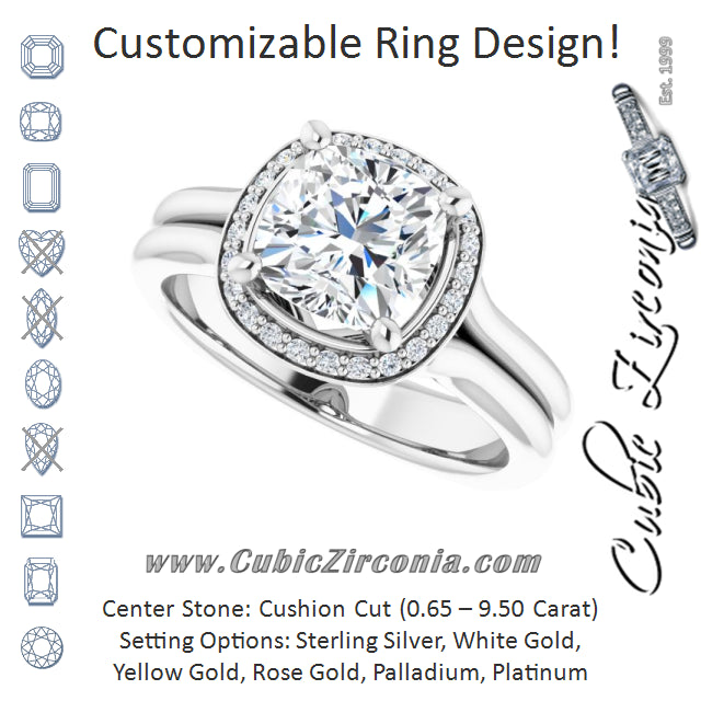 Cubic Zirconia Engagement Ring- The Elaine Li (Customizable Cushion Cut Style with Halo, Wide Split Band and Euro Shank)