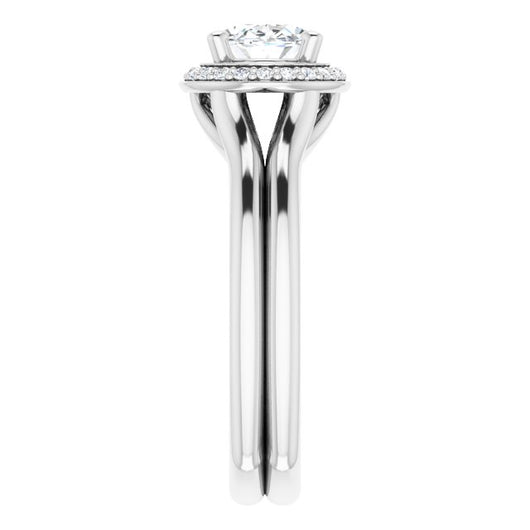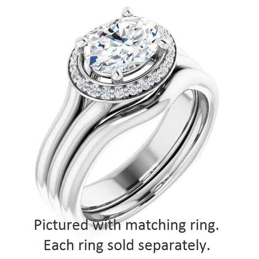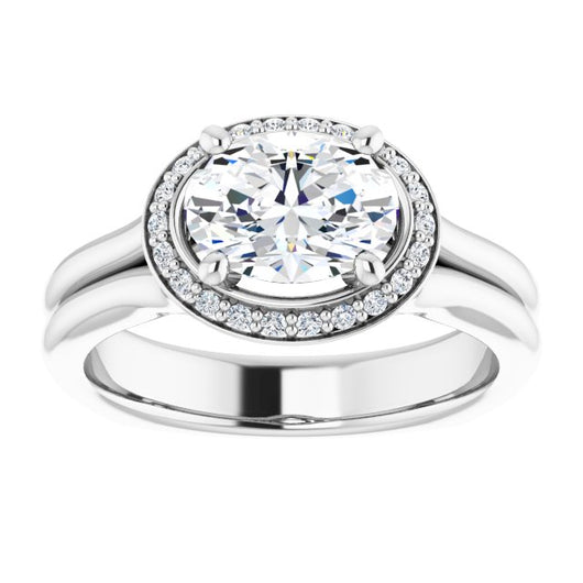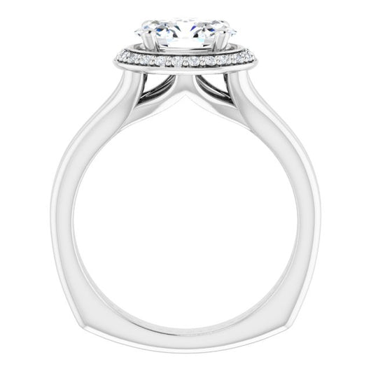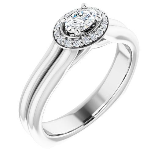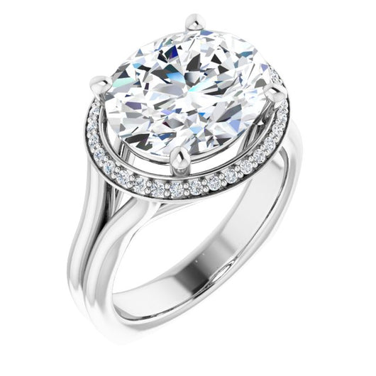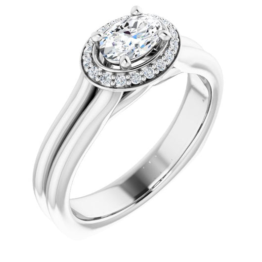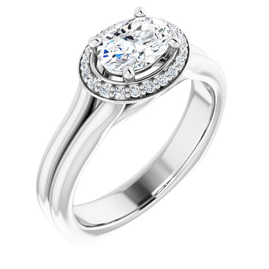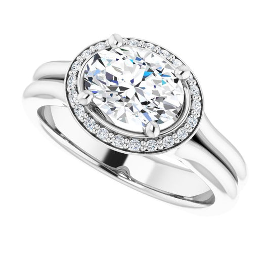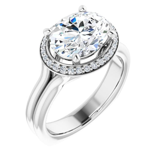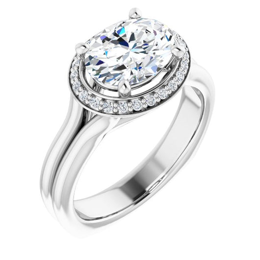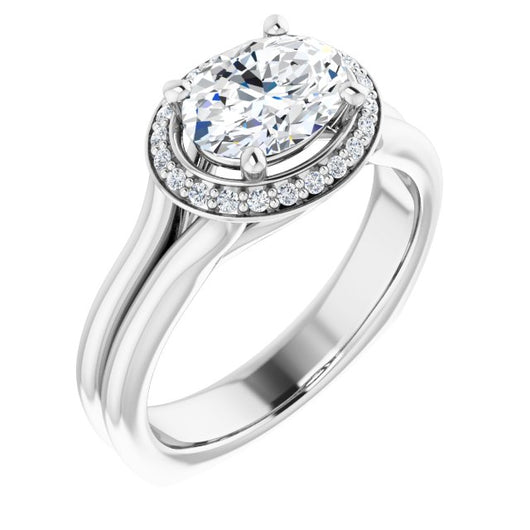 10K White Gold Customizable Oval Cut Style with Halo, Wide Split Band and Euro Shank