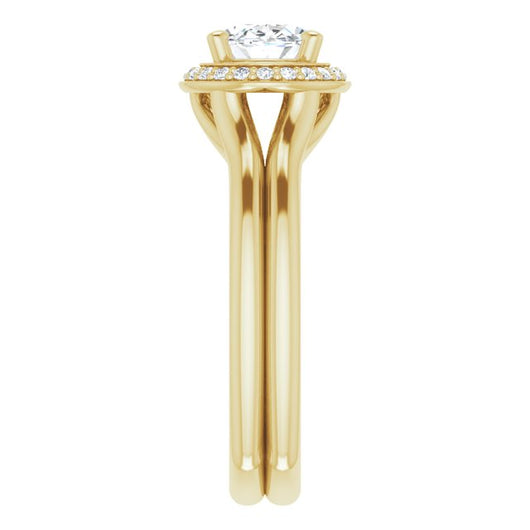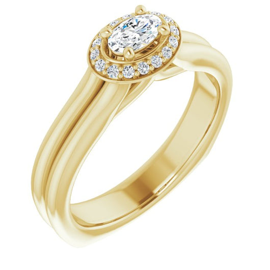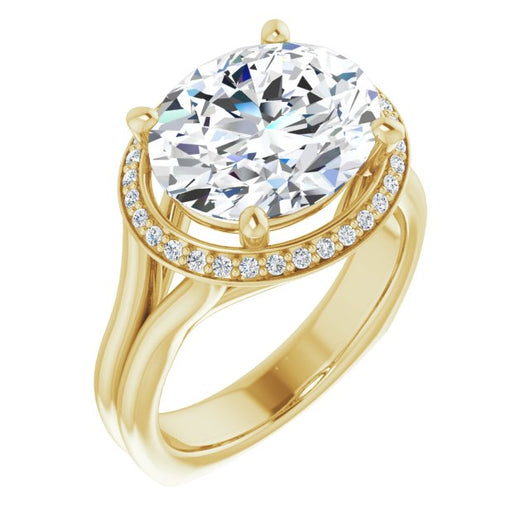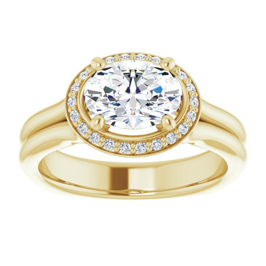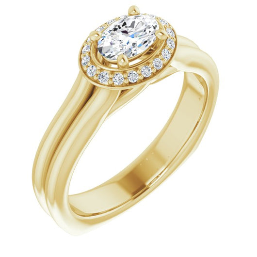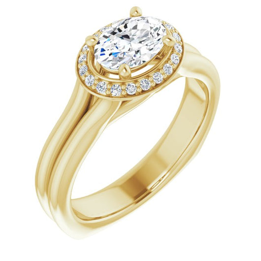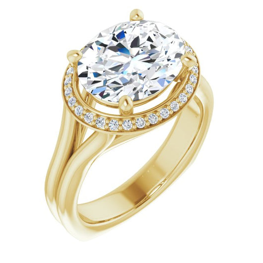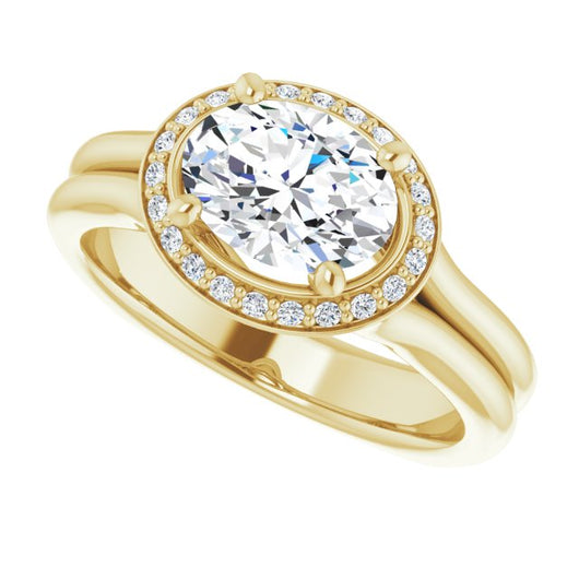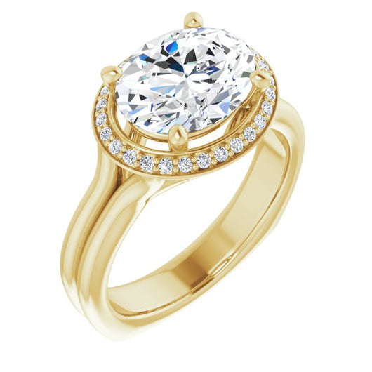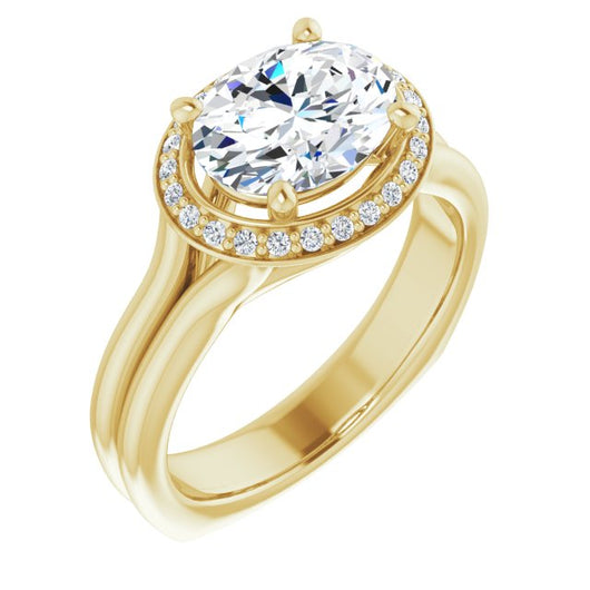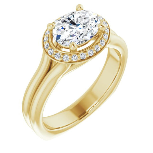 10K Yellow Gold Customizable Oval Cut Style with Halo, Wide Split Band and Euro Shank