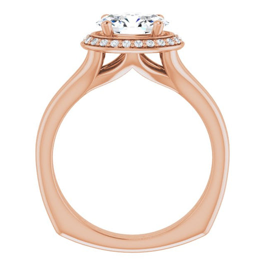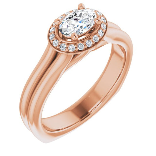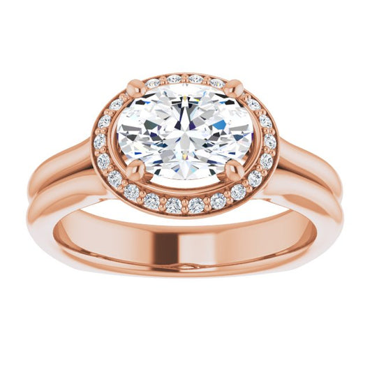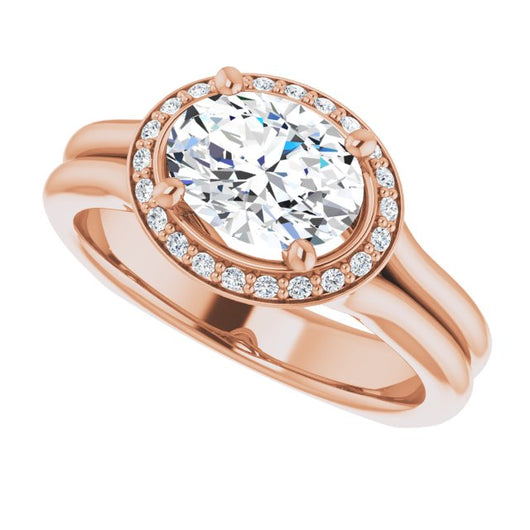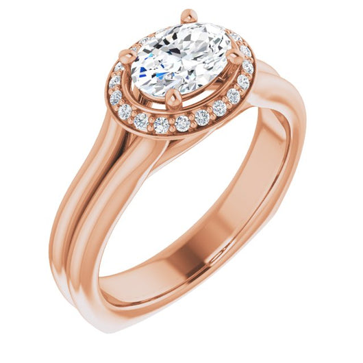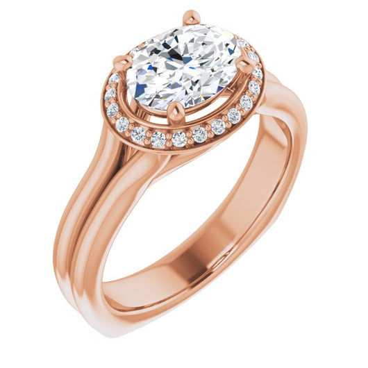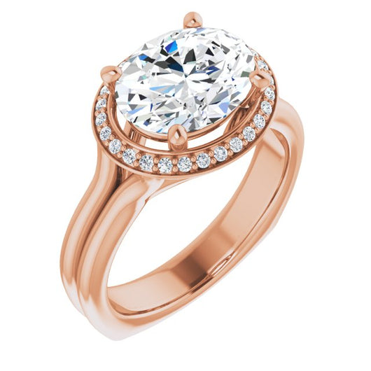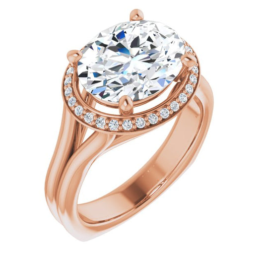 10K Rose Gold Customizable Oval Cut Style with Halo, Wide Split Band and Euro Shank