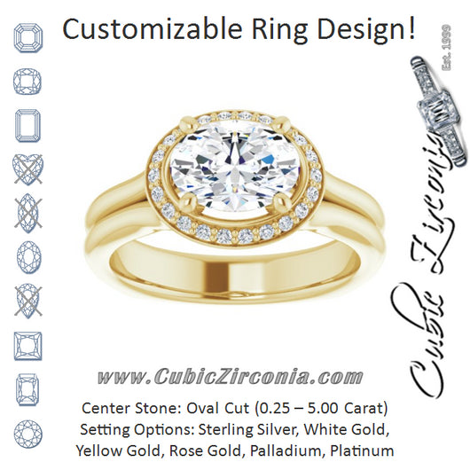 Cubic Zirconia Engagement Ring- The Elaine Li (Customizable Oval Cut Style with Halo, Wide Split Band and Euro Shank)