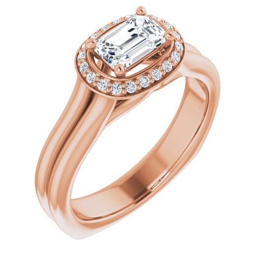 10K Rose Gold Customizable Emerald/Radiant Cut Style with Halo, Wide Split Band and Euro Shank