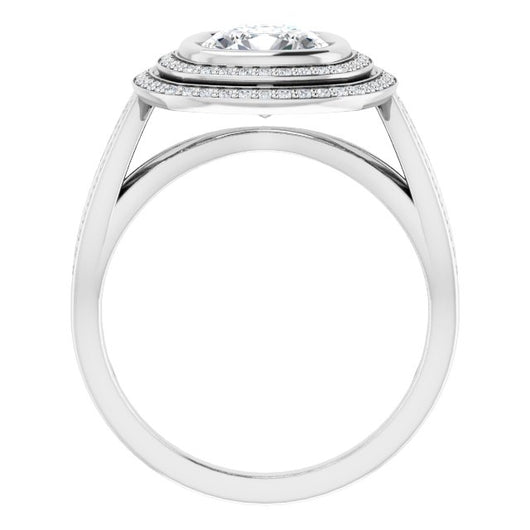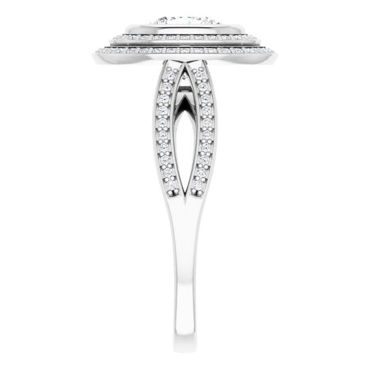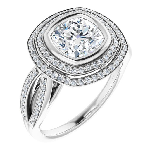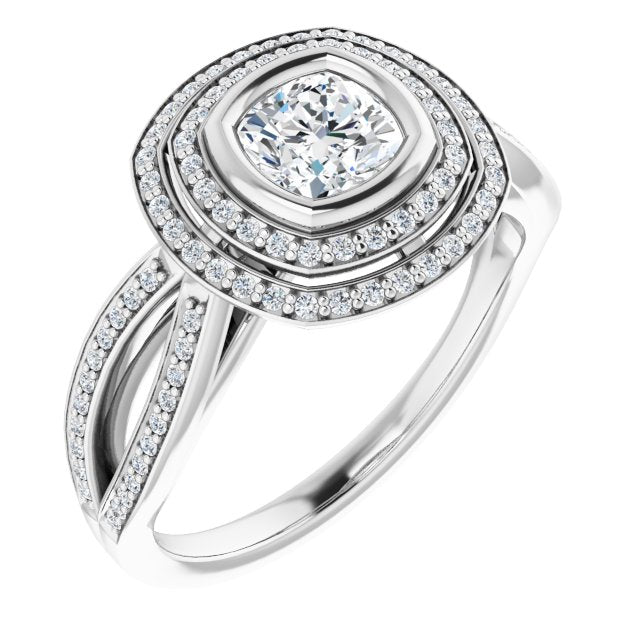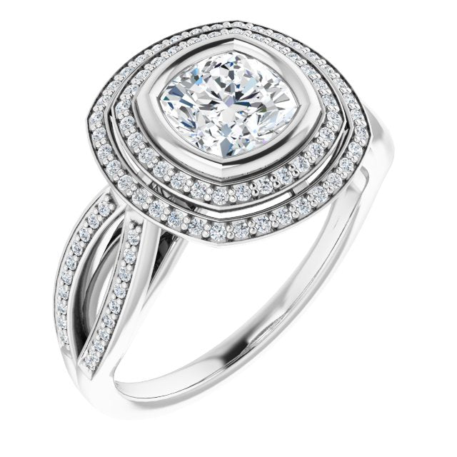 10K White Gold Customizable Bezel-set Cushion Cut Style with Double Halo and Split Shared Prong Band