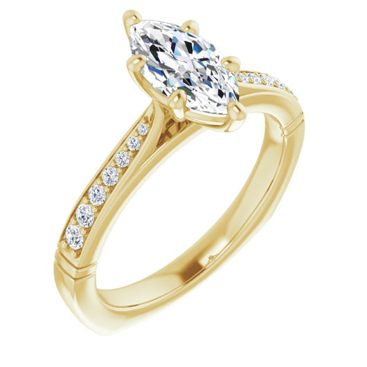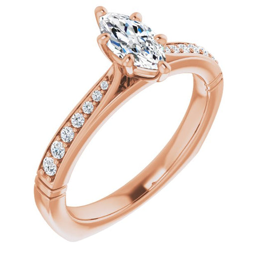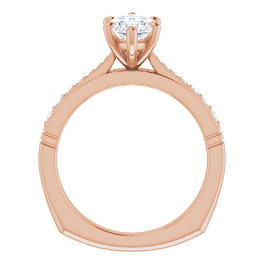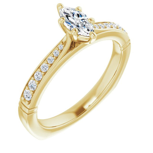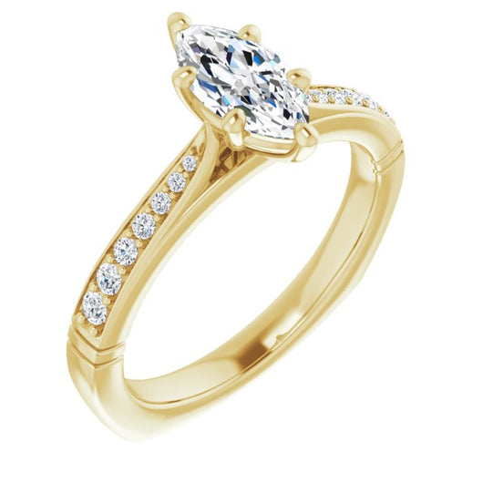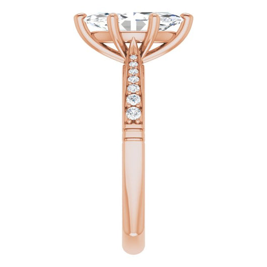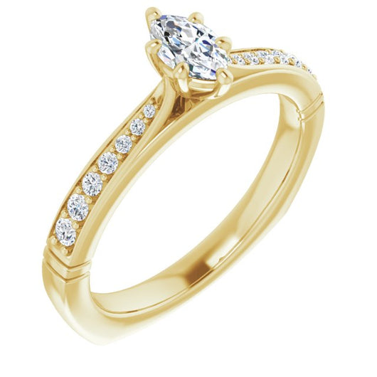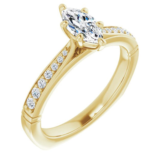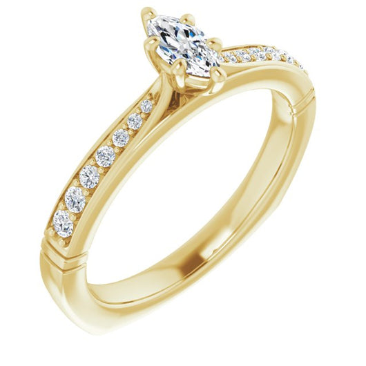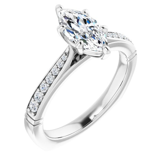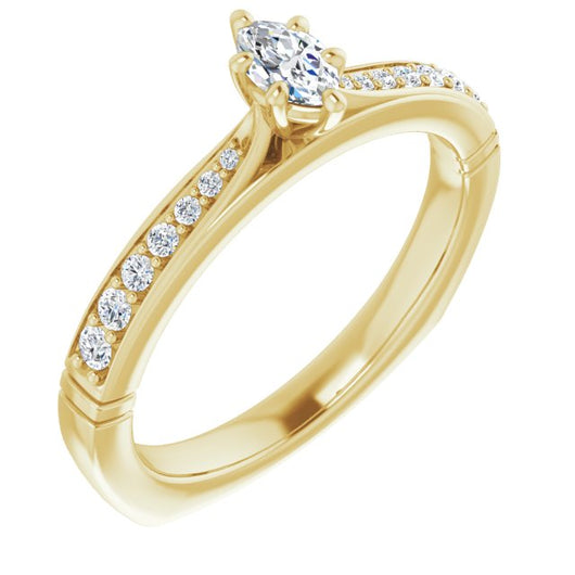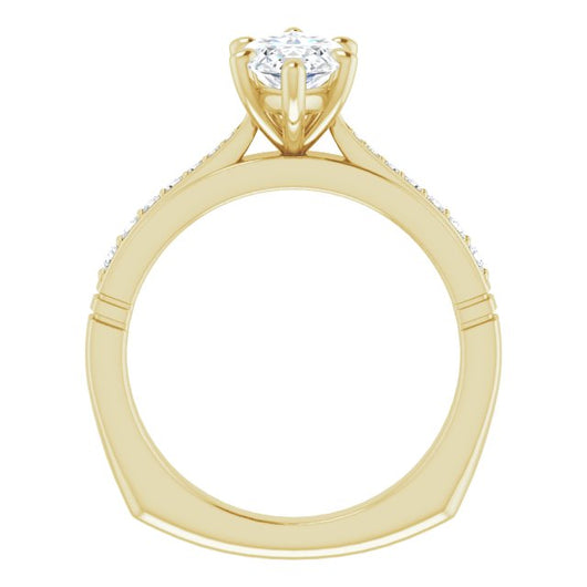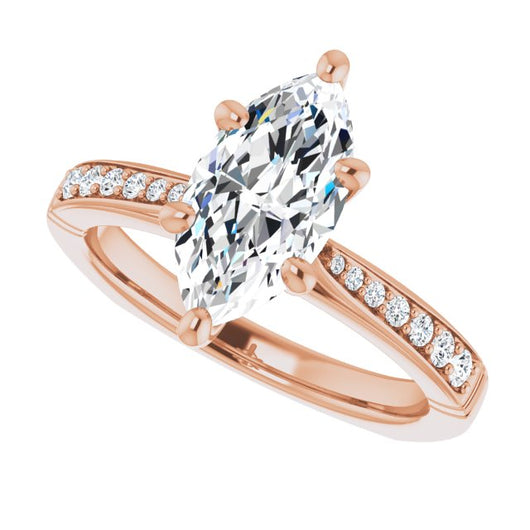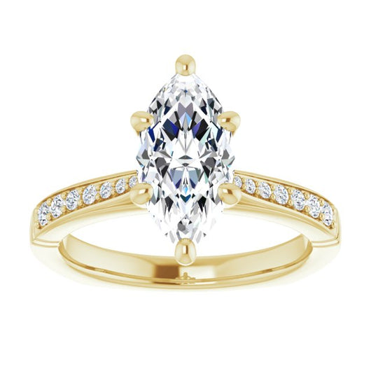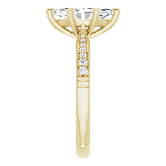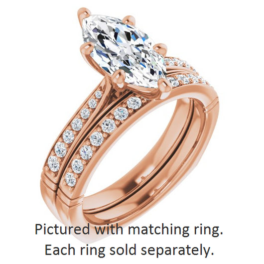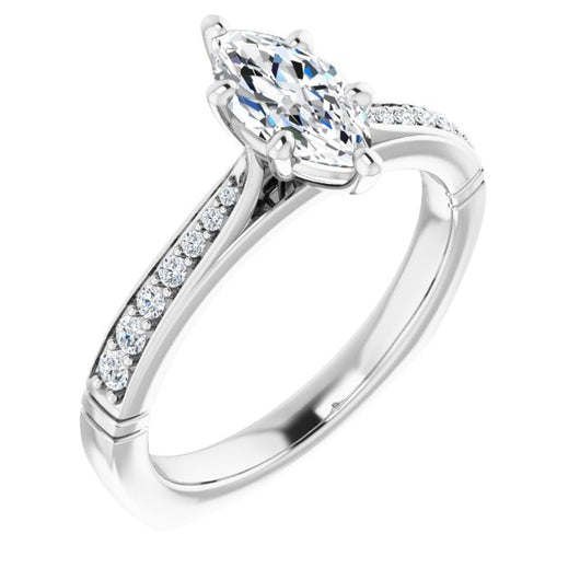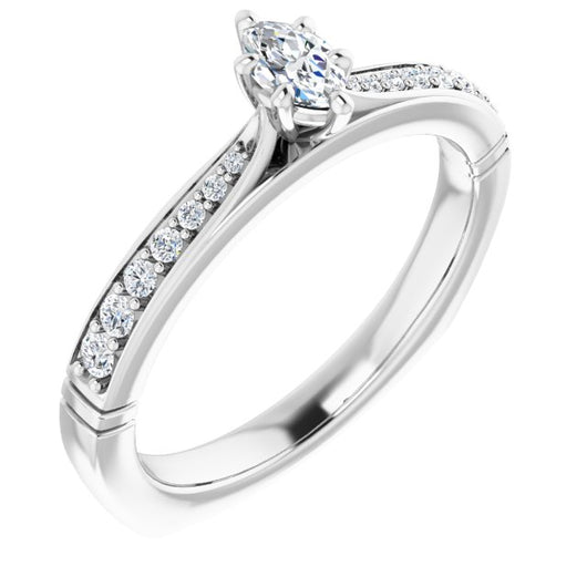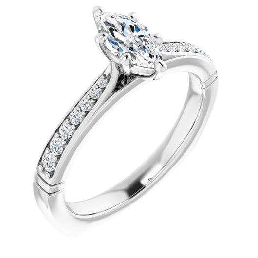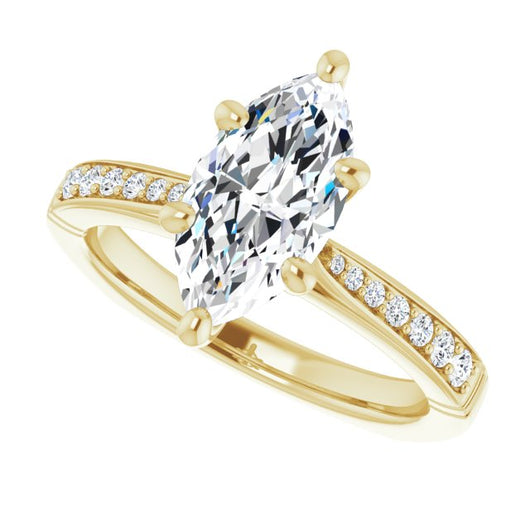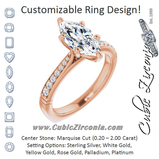 Center Stone Shape: Marquise Cut (as pictured). See this customizable ring set with other available center stone shapes here: customize setting.