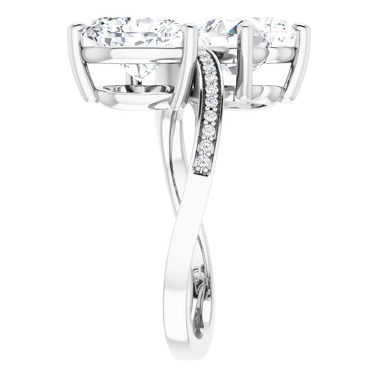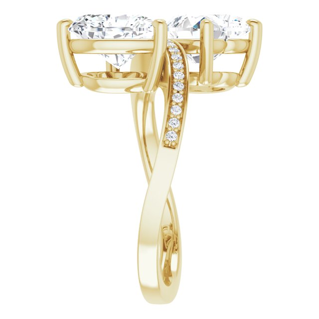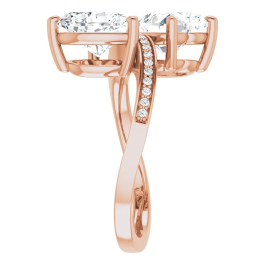 * Your ring’s total carat weight (TCW), band width, weight in grams, and/or number and size of accent, pavé, or halo stones will vary up or down depending on your choice of customizable center stone shape and size, precious metal type, and finger ring size via the drop-down options provided.