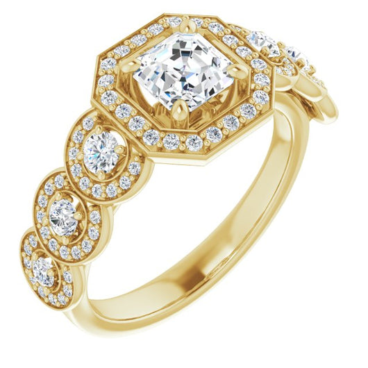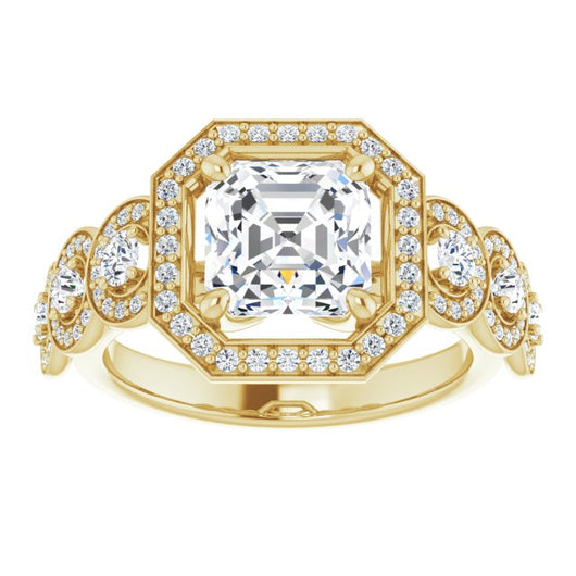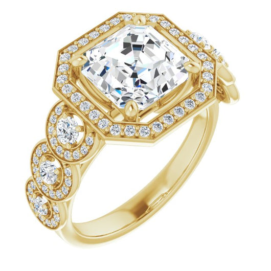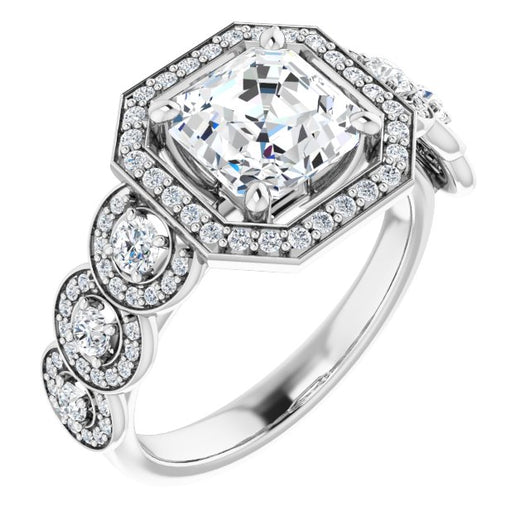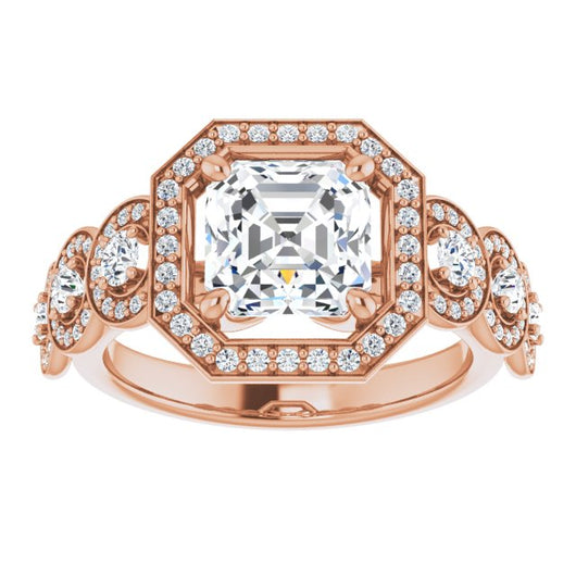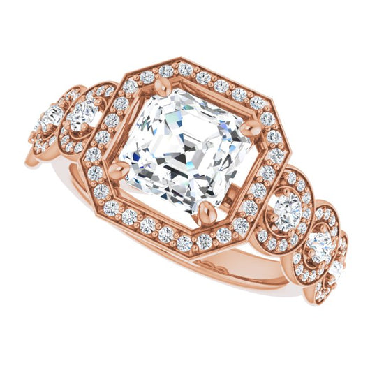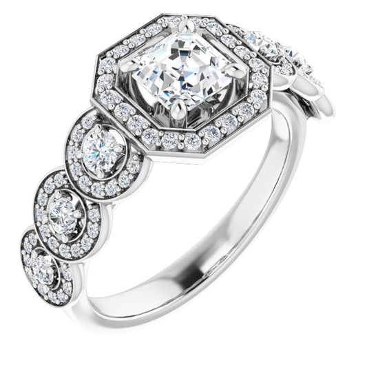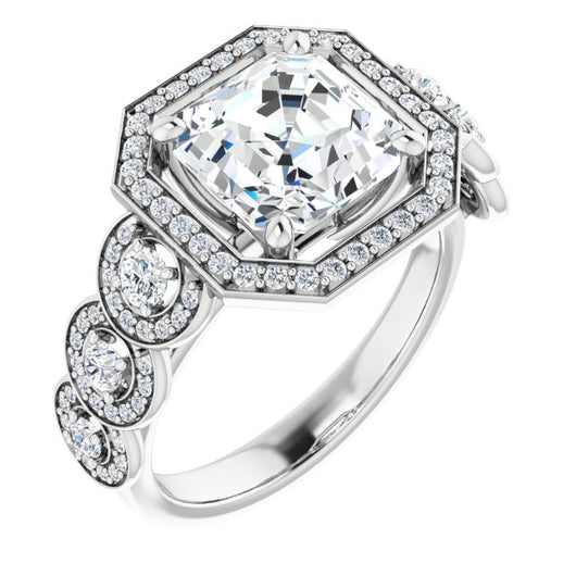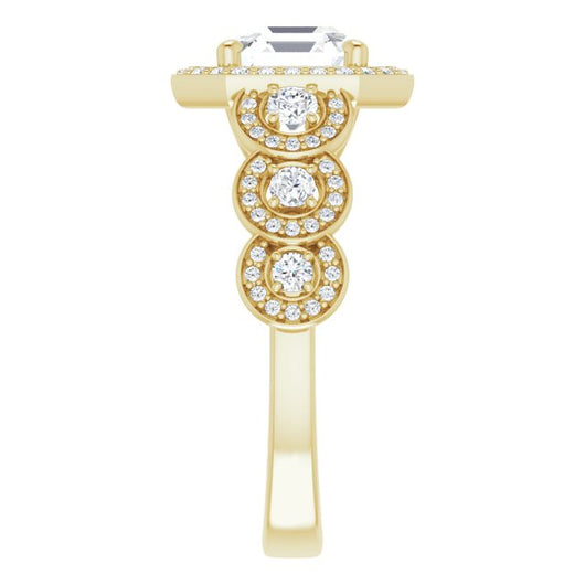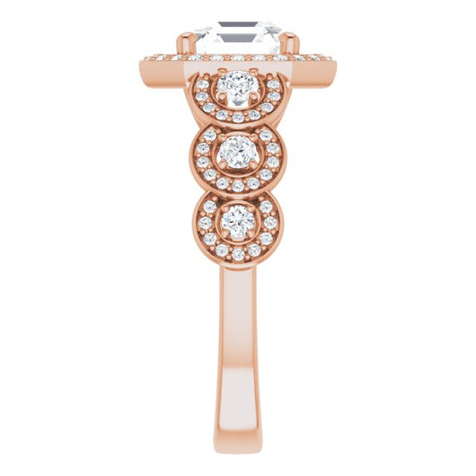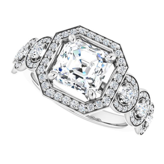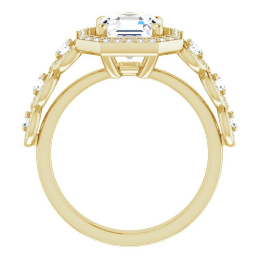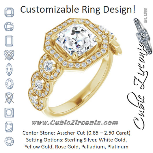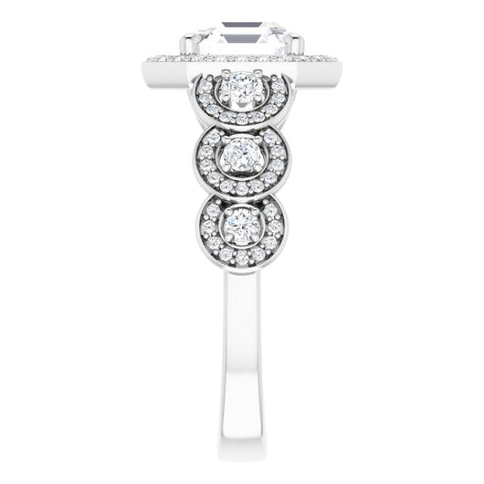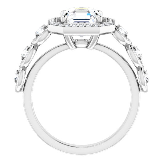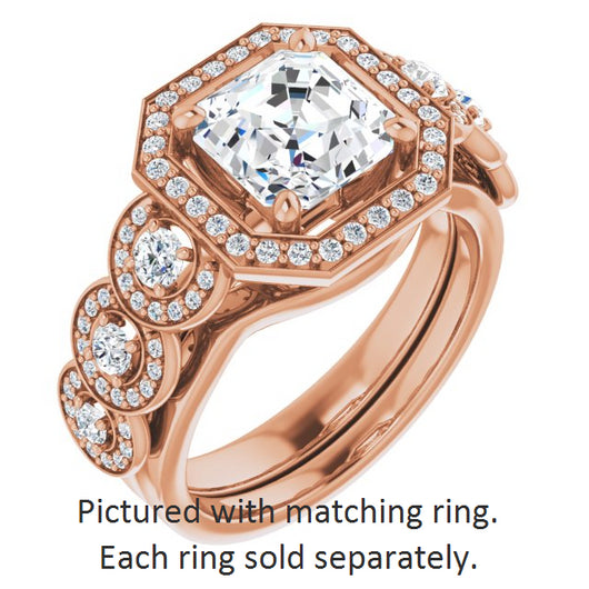 Center Stone Shape: Asscher Cut (as pictured). See this customizable ring set with other available center stone shapes here: customize setting.