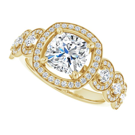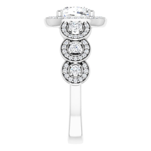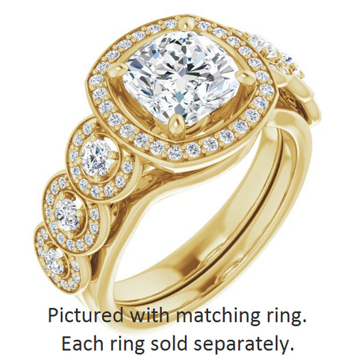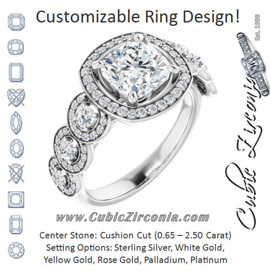Center Stone Shape: Cushion Cut (as pictured). See this customizable ring set with other available center stone shapes here: customize setting.