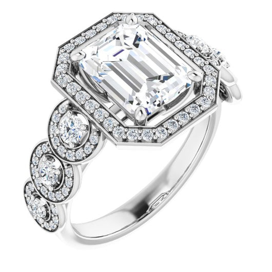Center Stone Shape: Radiant Cut (as pictured with Emerald Cut). See this customizable ring set with other available center stone shapes here: customize setting.