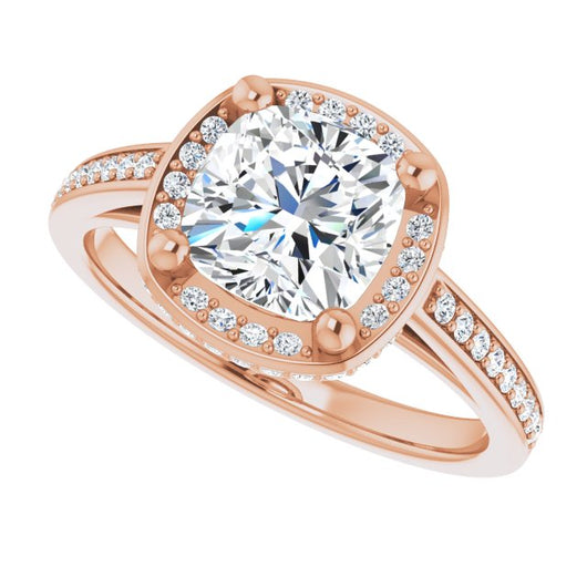 Center Stone Shape: Cushion Cut (as pictured). See this customizable ring set with other available center stone shapes here: customize setting.